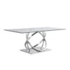 This sophisticated Arriana 1.5 m Light Grey Marble Dining Table will add a luxury feel to your home. The table is crafted with polished stainless steel circular legs adding a real statement in your dining room. The top of the table features a luxury light grey marble top made hardwearing and scratch resistant. The table comes with sleek lines and smooth materials adding elegance and making it easy to clean for a busy family. The dining table seats up to 4 people and can be displayed with your own choice of dining chairs or benches.