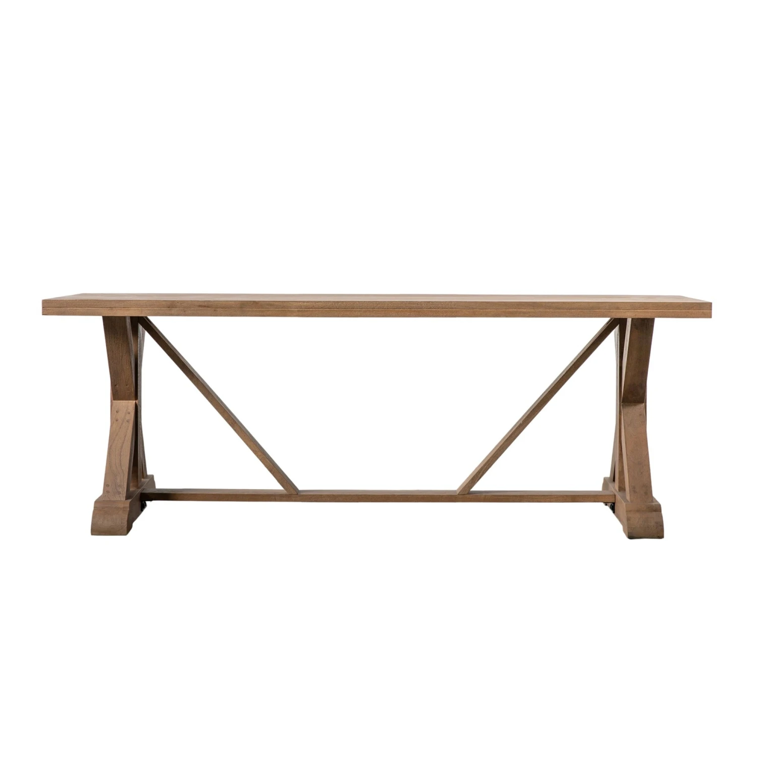 Crafted from solid mango wood, this contemporary styled Ashbourne Large Dining Table will make meal times more enjoyable as you gather the family together to dine. Coming with a thick rectangular table-top, it provides plenty of space to seat up to 8 people around it and comes in a light wood natural finish. The base underneath features x shaped legs that guarantee strength and stability whilst also offering a stylish appeal. Lightly sand blasted to add texture, this large family dining table will be a welcome addition in any modern home.