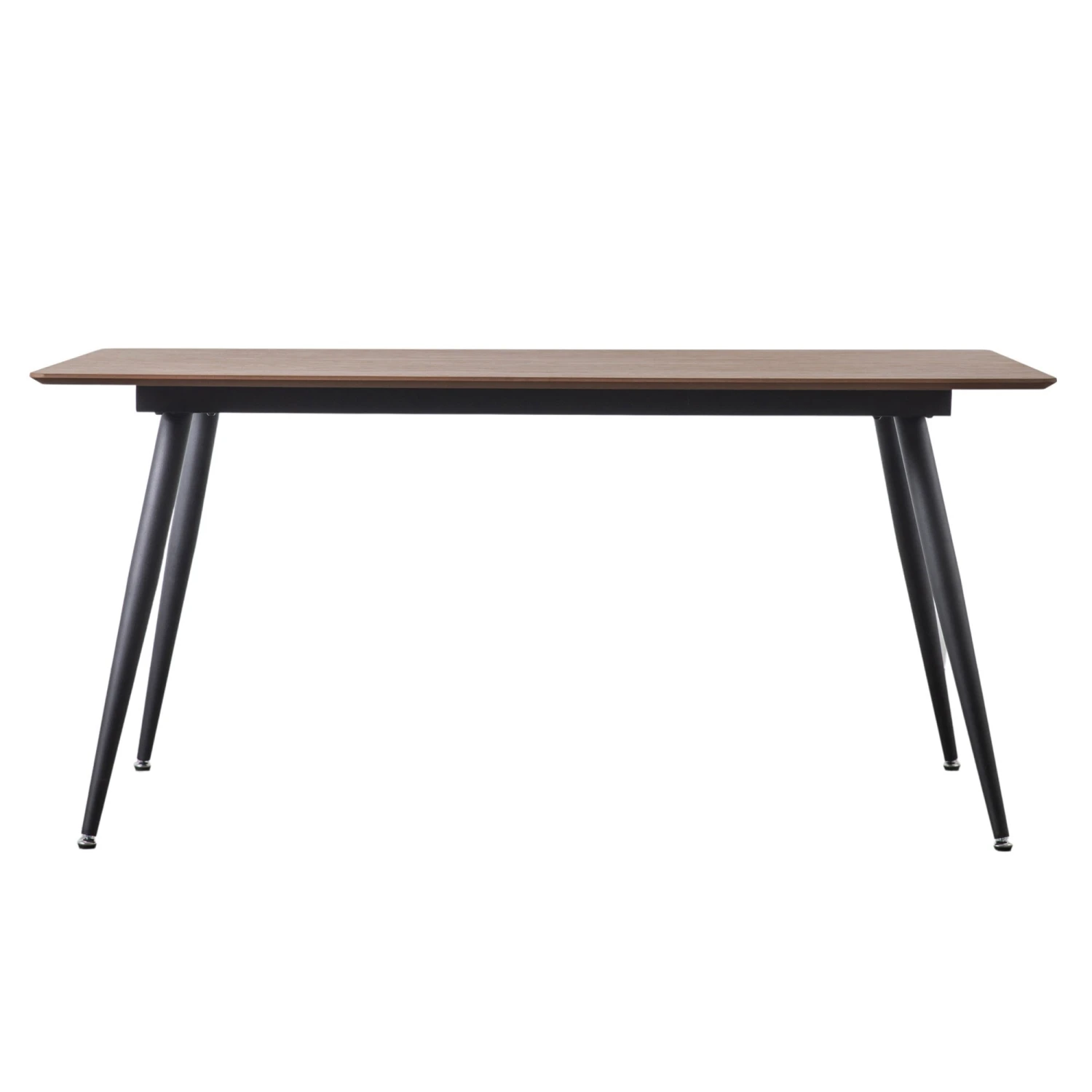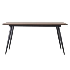 Simple, strong and durable in design, this Astley Walnut Dining Table is a firm favourite for those with a minimalistic style of interior decor. Coming with a rectangular oak wooden tabletop, with soft curved edging on top of a solid black iron metal base, it’s sturdily built with added stability using gently sloping table legs. Able to fit 6 people around it, this dining table is a great fit for the average family, bringing them together for an enjoyable meal time. Complete in a bold dark walnut finish, it will stand out amongst other dining room furnishings.