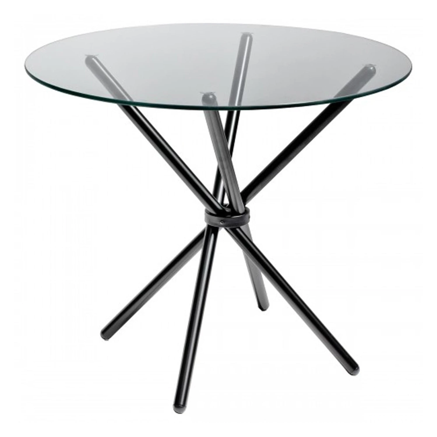 The Black Criss Cross Glass Dining Table can fold away for convenient storage when not in use, and the featured criss cross table legs fall as the main design. The black leg frame has a collapsible base and the table top can be removed. Tempered glass top for safety.