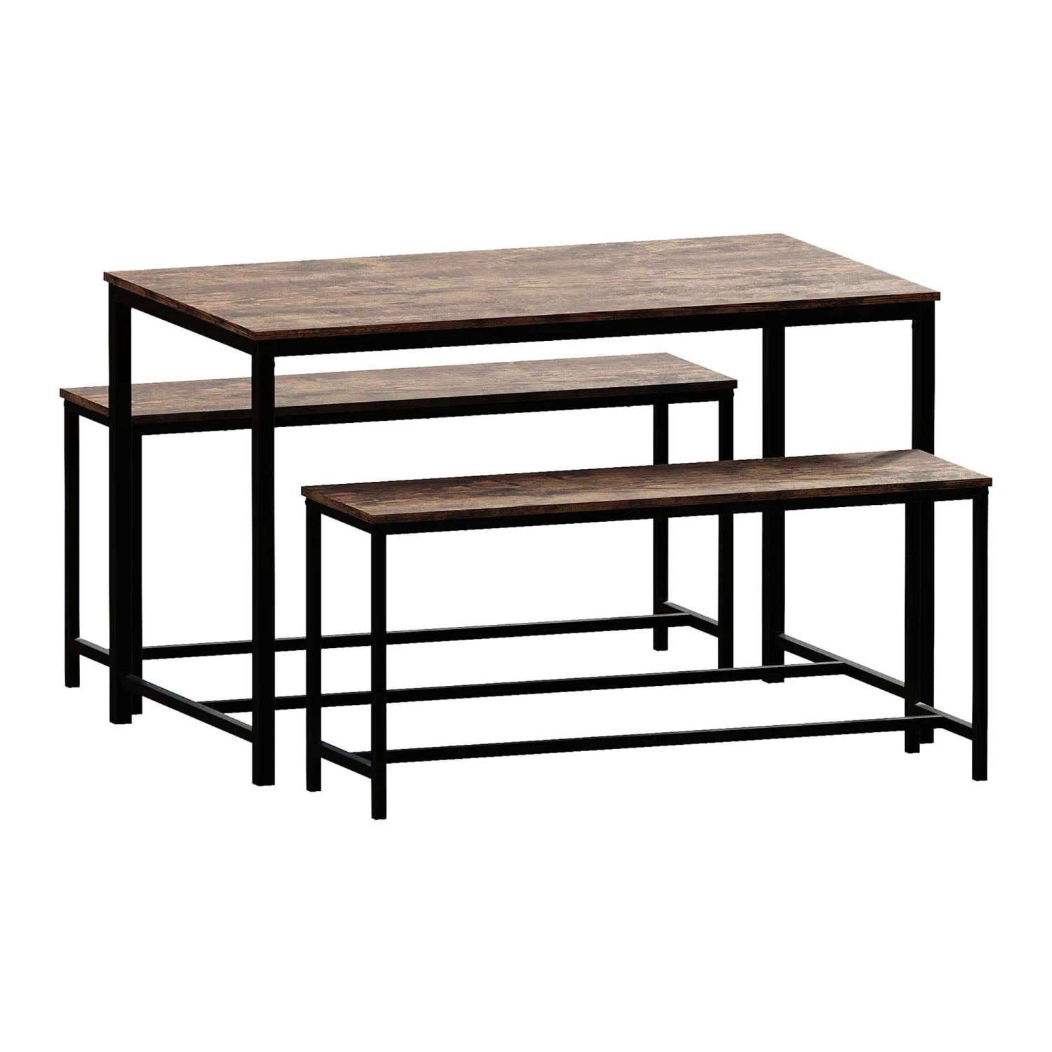 Introducing the Brooklyn Dark Wood 4 Seater Dining Set, a lovely addition to either your dining room or kitchen at home. Compactly designed, you can slide the dining benches underneath, giving you more floor space availability. Complete with 2 benches and a rectangular dining table, it has a dark wood finish and industrial styling that is guaranteed to make it stand out. Seating up to 4 people, it’s ideal for smaller families or homes and is a great way to get the family together!