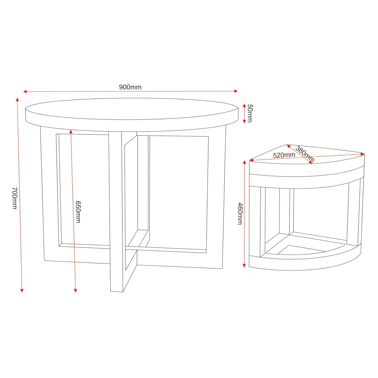- Table: Width 90cm, Depth 90cm, Height 70cm