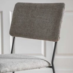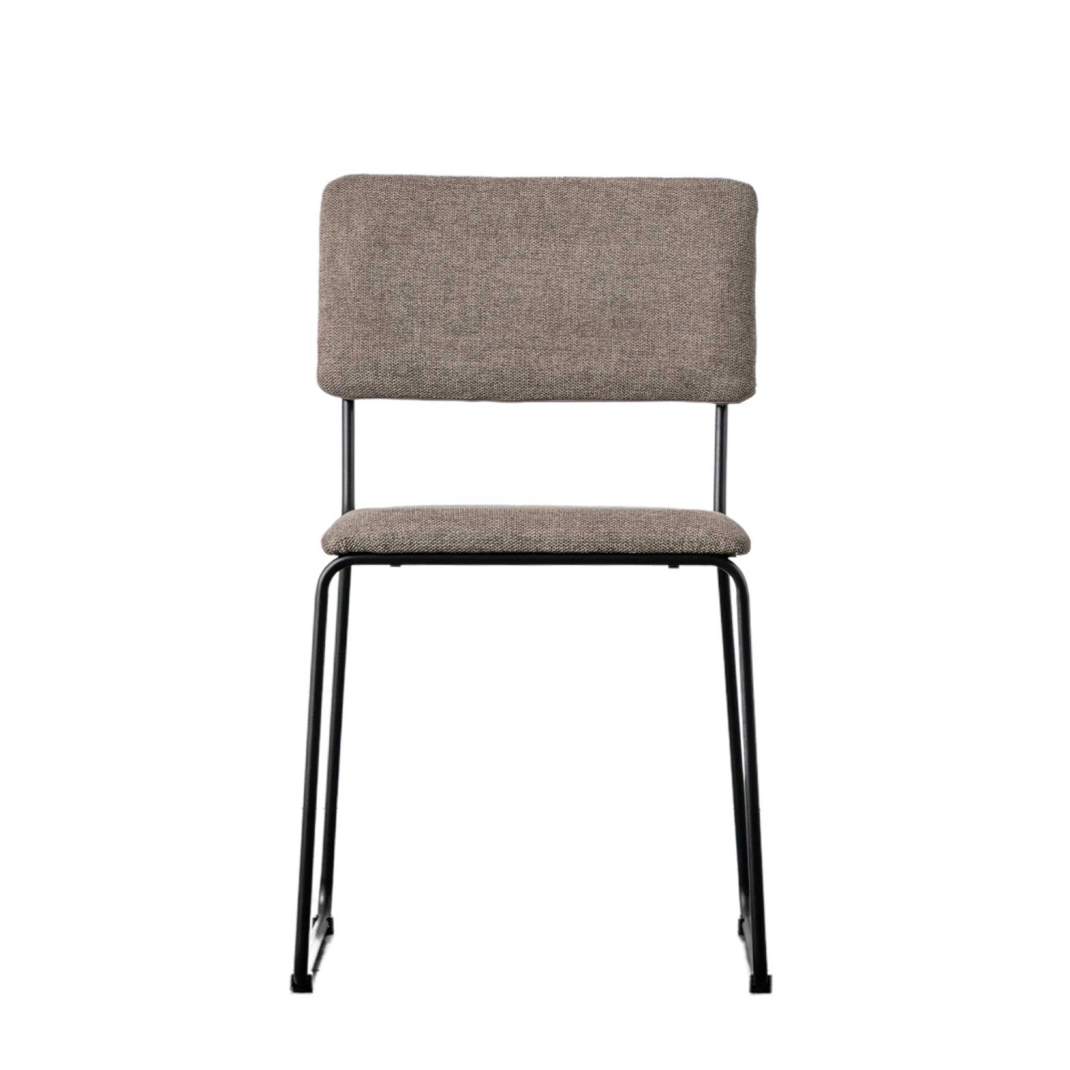 A pack of 2 Chalkwell Chocolate Dining Chairs that feature a minimalistic contemporary design, upholstered in a chocolate brown fabric that is super soft, featuring black iron metal frames to ensure a sturdy build. A gently padded seat and back rest make this a comfortable addition to your dining room.