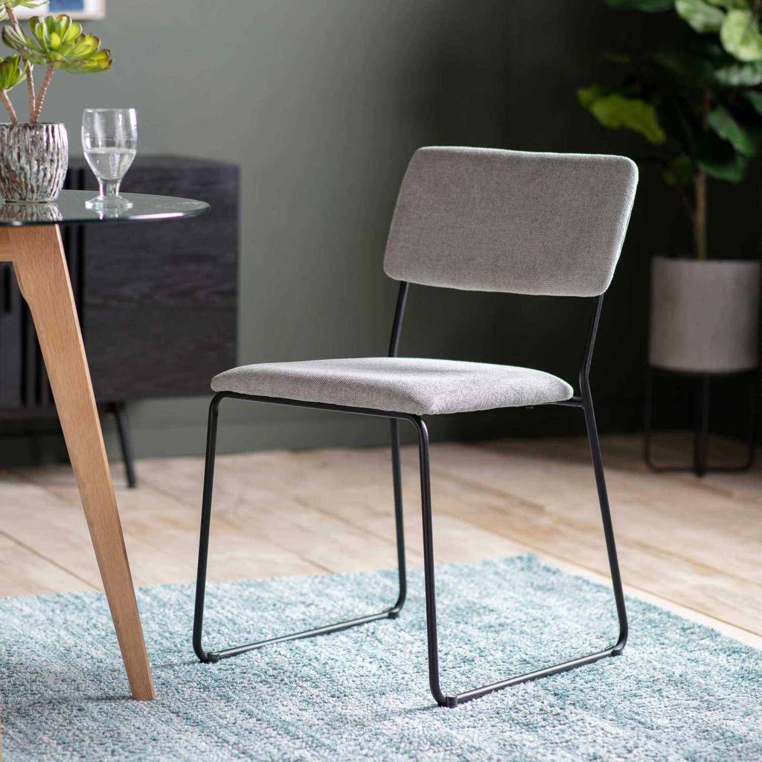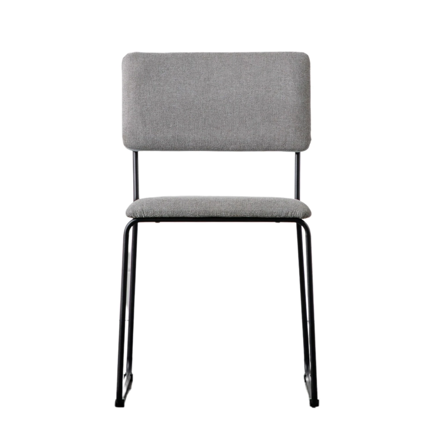 A contemporary style Chalkwell Light Grey Dining Chair that comes in a 2 pack with a minimalistic design. Fabric upholstered in a light grey colourway with a black iron metal frame, it makes a comfortable seat that you can place around your dining room table. Relax at meal times and enjoy a catch-up with family or friends when dining on it.