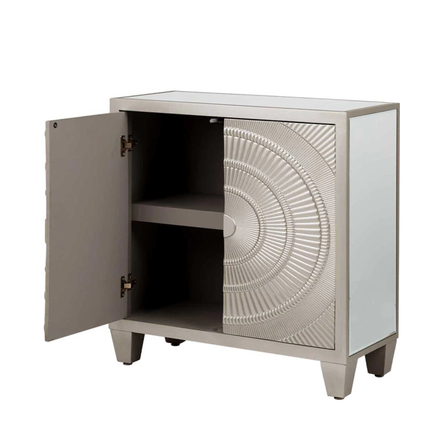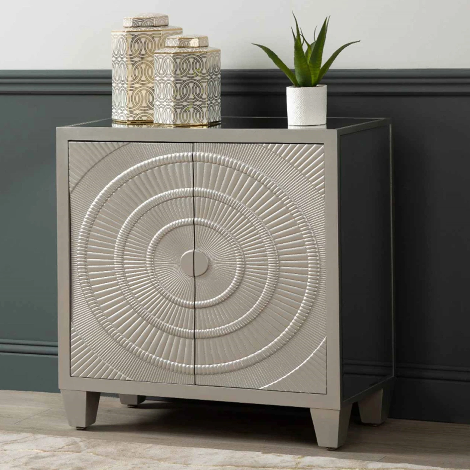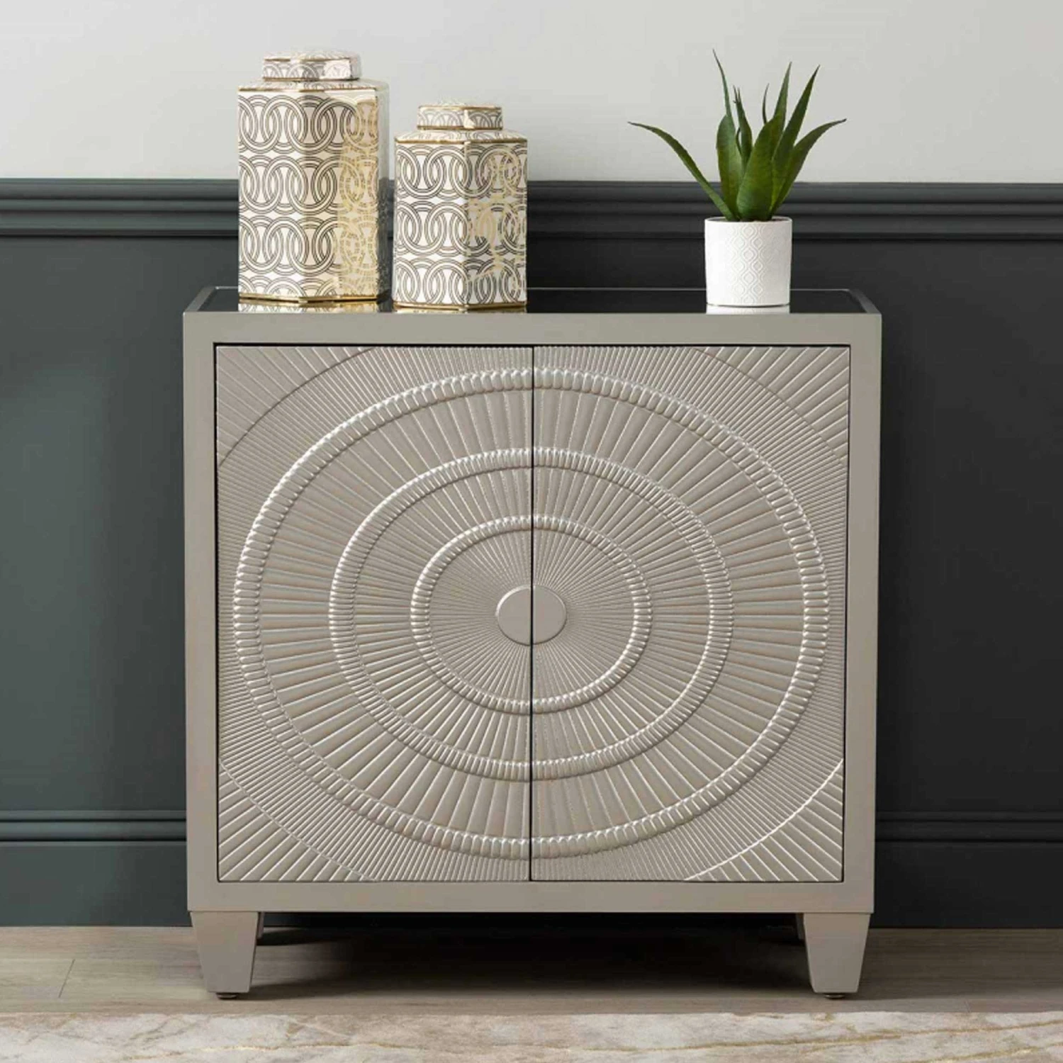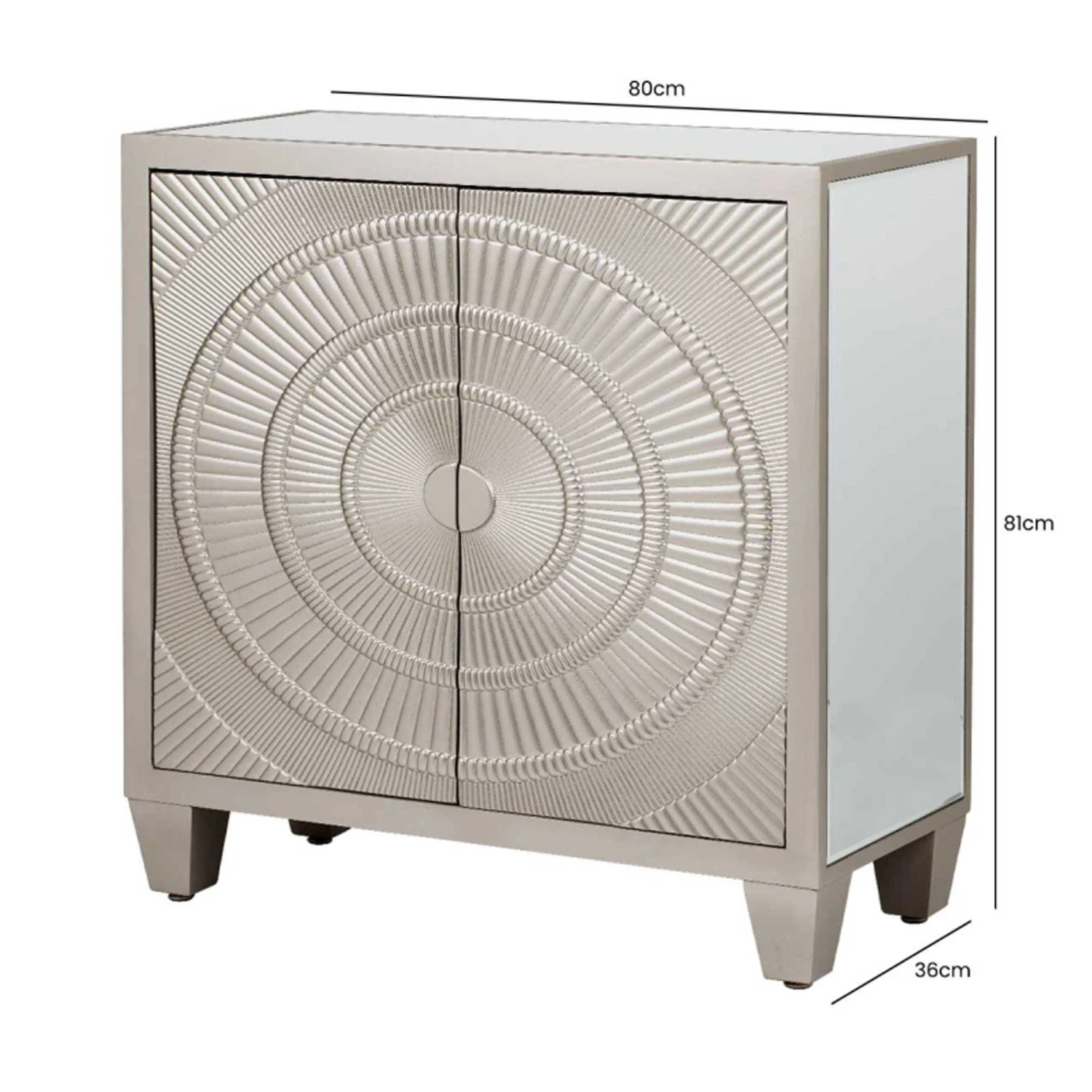 A great storage unit for your home, the Cirque Champagne 2 Door Cabinet is visually appealing with its beautiful ornate circular patterned front with a luxury champagne finish. Manufactured from MDF and veneer, it’s durably built to be long-lasting and comes with 2 doors of storage that, when opened up, reveals an internal shelf to split the cabinet into sections for your household essentials. Place in a hallway, kitchen, dining or living room, it’s super versatile!