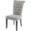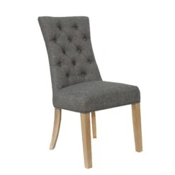 Introduce additional seating to your home with this ultra stylish, beautiful Dark Grey Curved Button Back Chair. Suitable for placing around a dining table to give a better dining experience with its curved back and padded seat design, it will provide maximum comfort and add luxury style indoors. Fabric upholstered in a dark grey colour, it has a simple button back design to add detail and will upgrade your dining furniture in an instant.