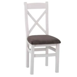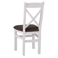 The Eastbury White Fabric Seat Crossback Dining Chair comes in a simplistic cross back pattern to the high back rest giving extra support. The chair is made out of wood painted in a bright white design and features a contrasting grey plush velvet fabric. This stunning design will look stunning paired with the matching dining table from the Eastbury White Dining Collection, as well as other items from the range,