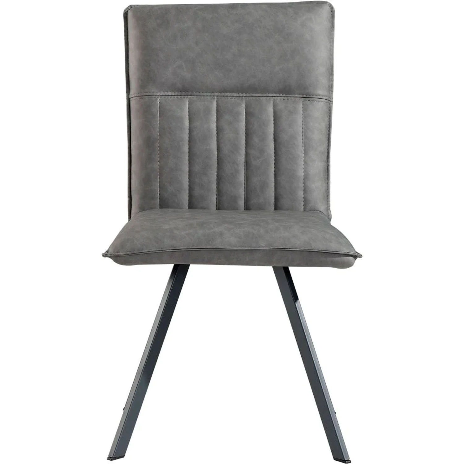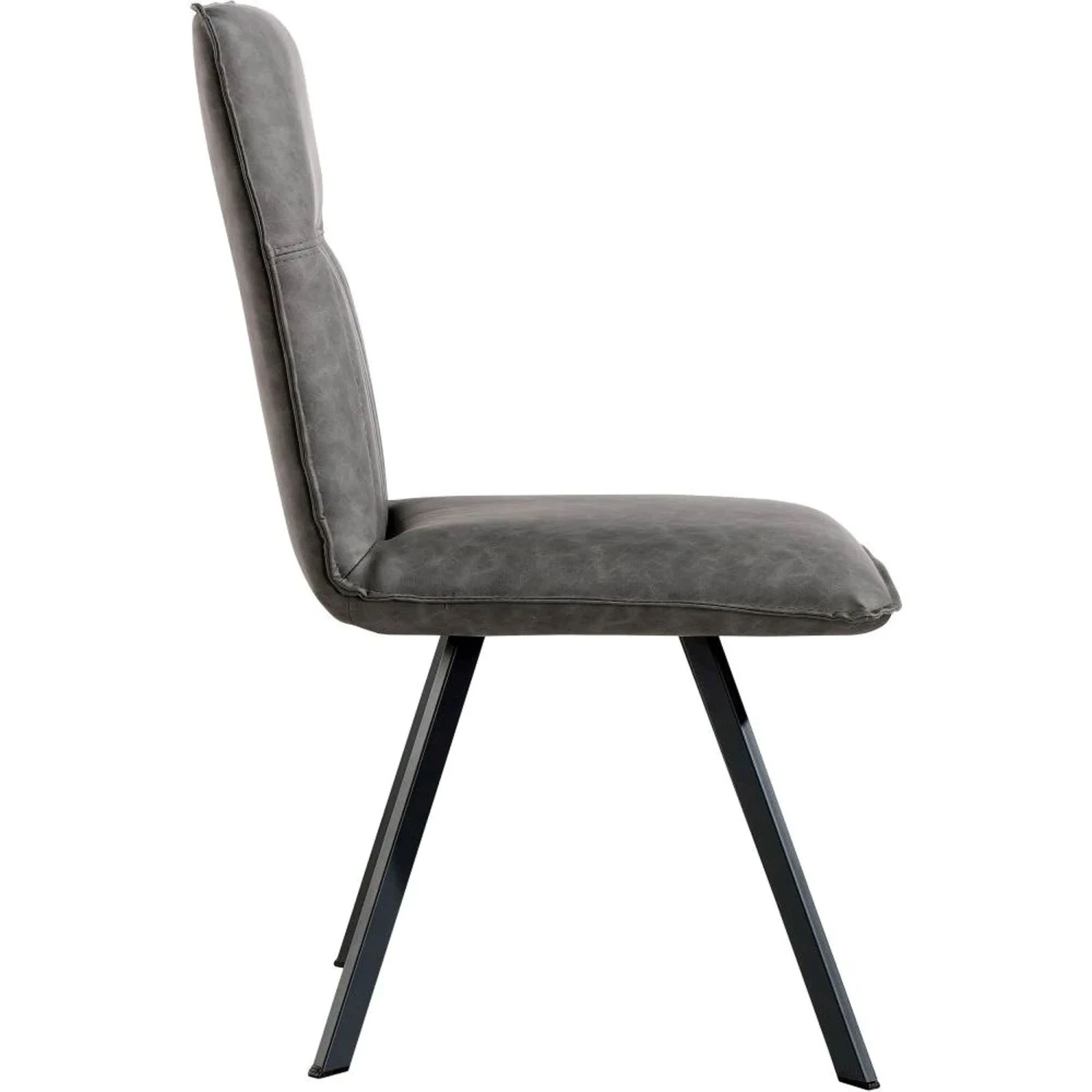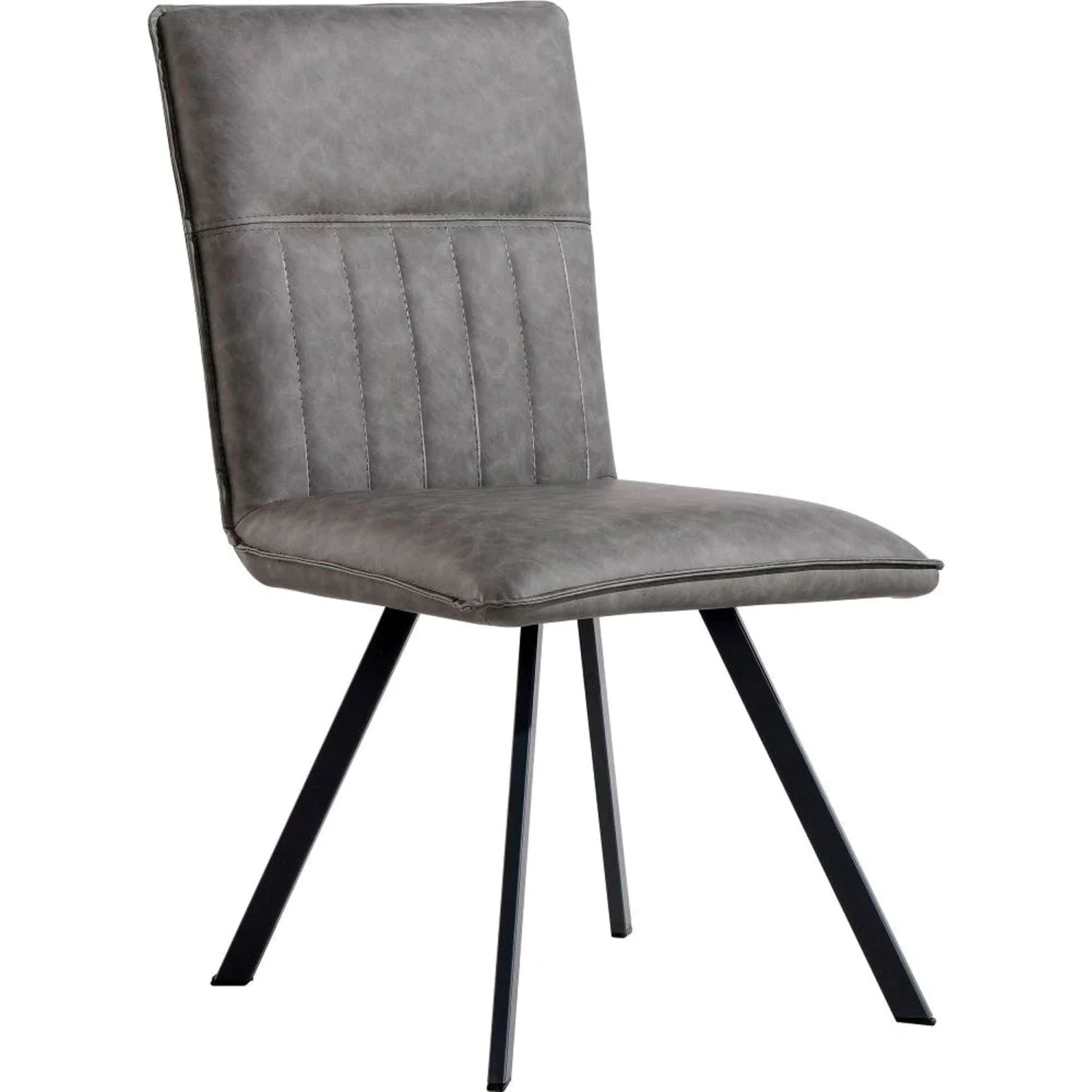 Bringing a sophisticated design to your dining room with the Grey PU Panel Dining Chair. The chair comes in a stunning grey PU coated fabric in a two tone look, there is panel detailing to the back with tonal stitching. The chair is complete with black metal legs with an angled design. This is the perfect if you are needing something not to large and but still something that will stand out and give your dining area more of a modern and uplifting touch around any table.