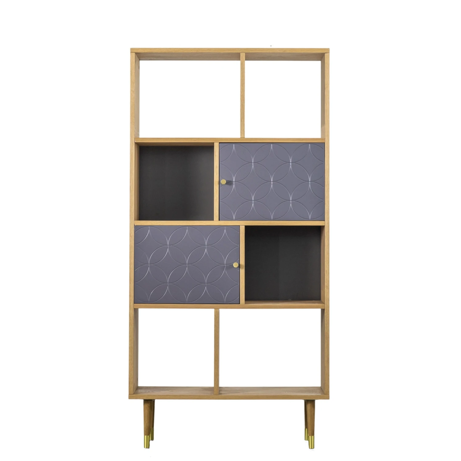 Perfect for displaying all your favourite possessions, this Holbrook Grey & Oak Display Unit comes with 2 doors and 6 shelves of storage space. Place ornaments, books, photo frames and a houseplant on the shelves provided and hide away your personal pieces behind the 2 doors provided, it’s a large display unit that gives you ample storage. Solidly built from MDF and Oak Wood, it has a natural wood grain finish with the door fronts painted in a light grey colour with a spectacular geometric circular patterned design. Finished off with simple brass detailing for the handles and unit legs, it’s certain to create an eye-catching feature in the home.