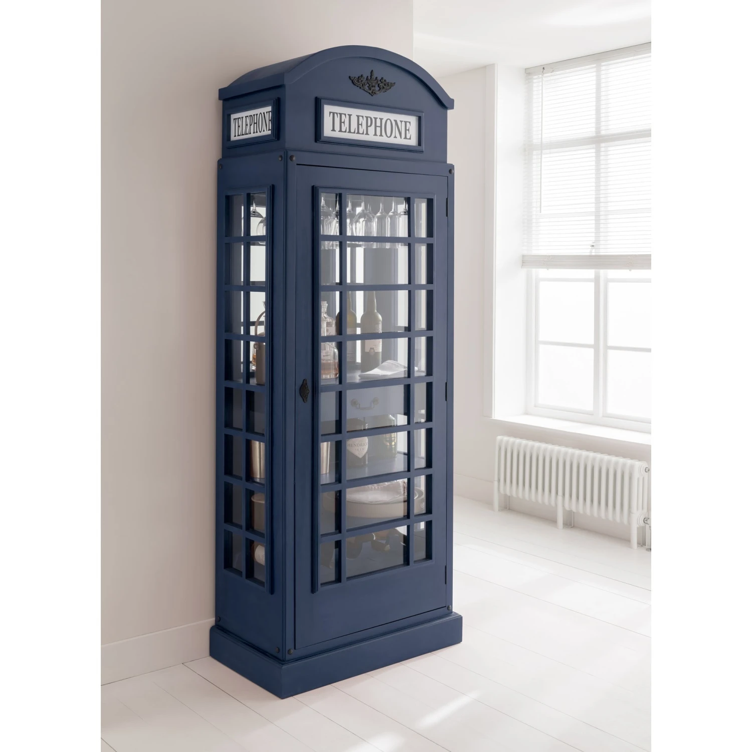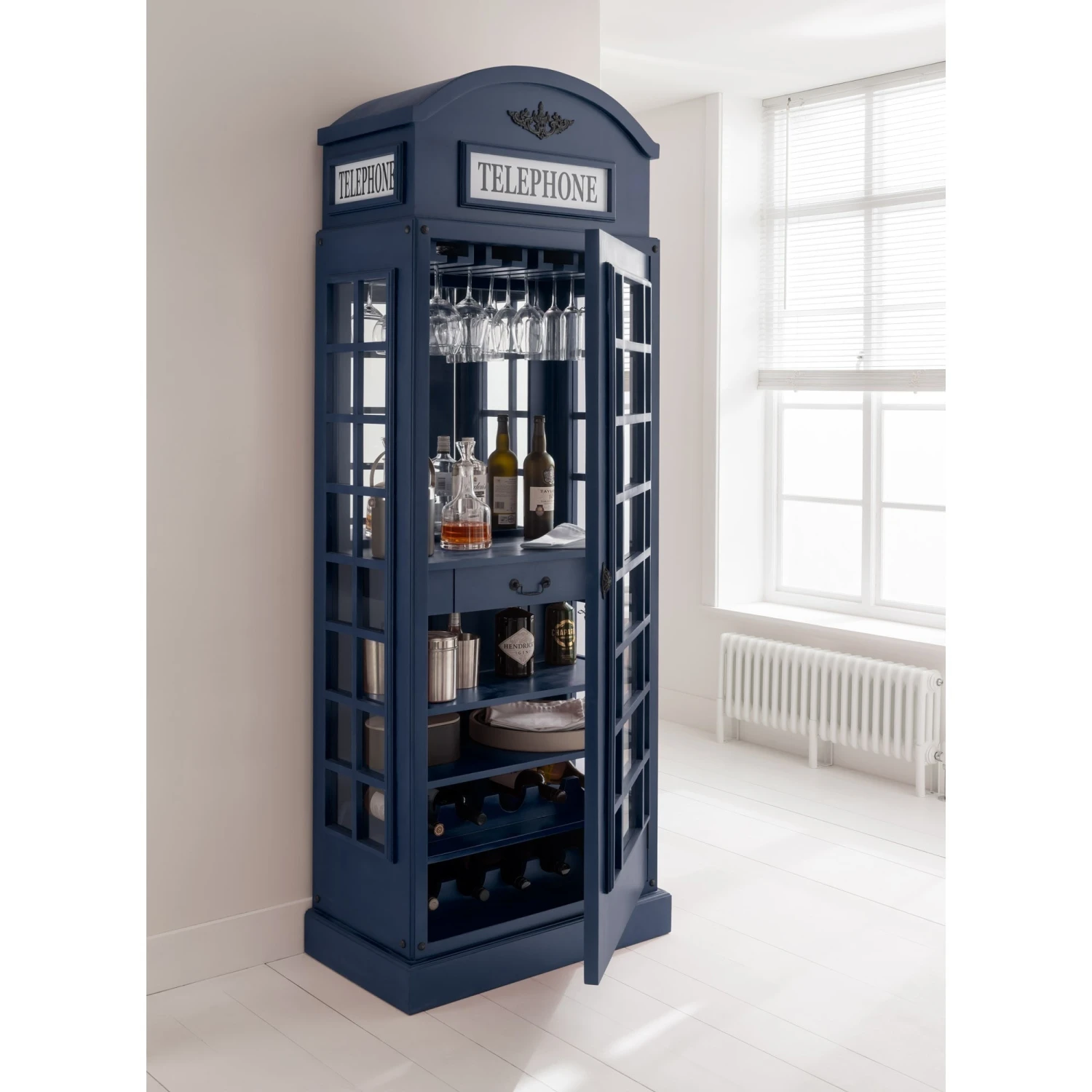 This trendy drinks cabinet & unique cocktail cabinet design is one of our best sellers. A dark blue designer drinks cabinet in the style of the timeless London telephone box`s is a must-have for any home bar that lacks a unique focal point.