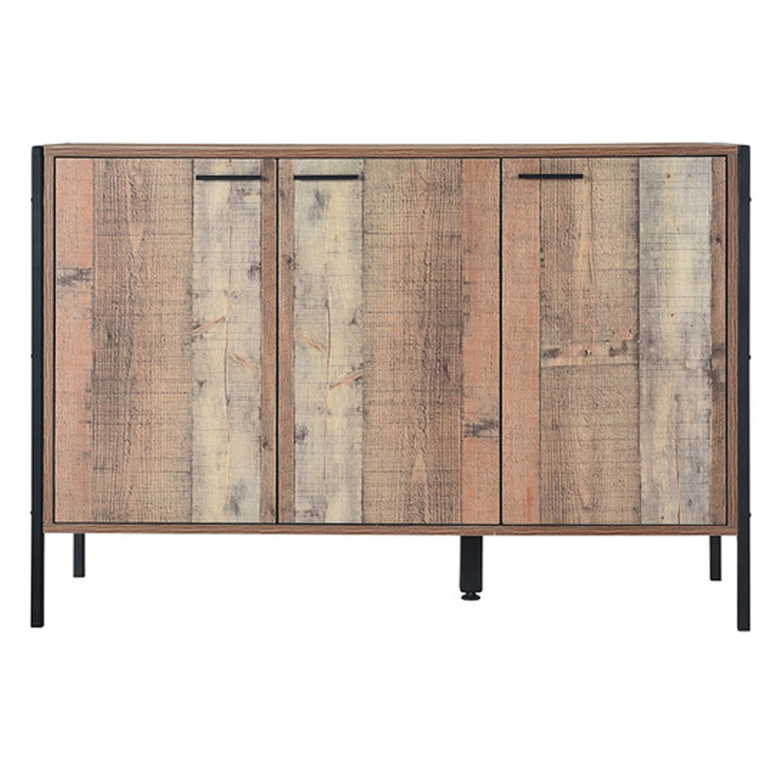 Deliver to your home this beautiful large wooden sideboard, coming with 3 doors and a metal frame for a sturdy upright hold. This would be perfect if put with any modern and contemporary styled furniture. It comes with a lot of storage space so is perfect for any home which is needing more accessibility to place any belongings.
