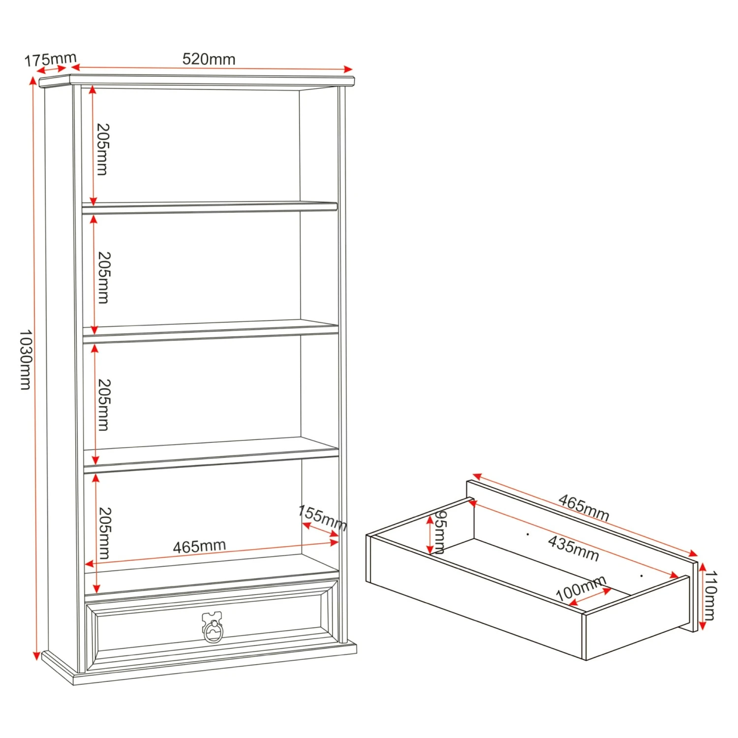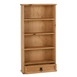 The Huxley Pine 1 Drawer DVD Rack from the Huxley Range has 4 shelves and 1 drawer storage space, ideal for those movie lovers with a massive DVD collection! Made with Distressed Waxed Pine, the DVD Rack features a contrasting metal drawer handle. Anti-tip strap included.