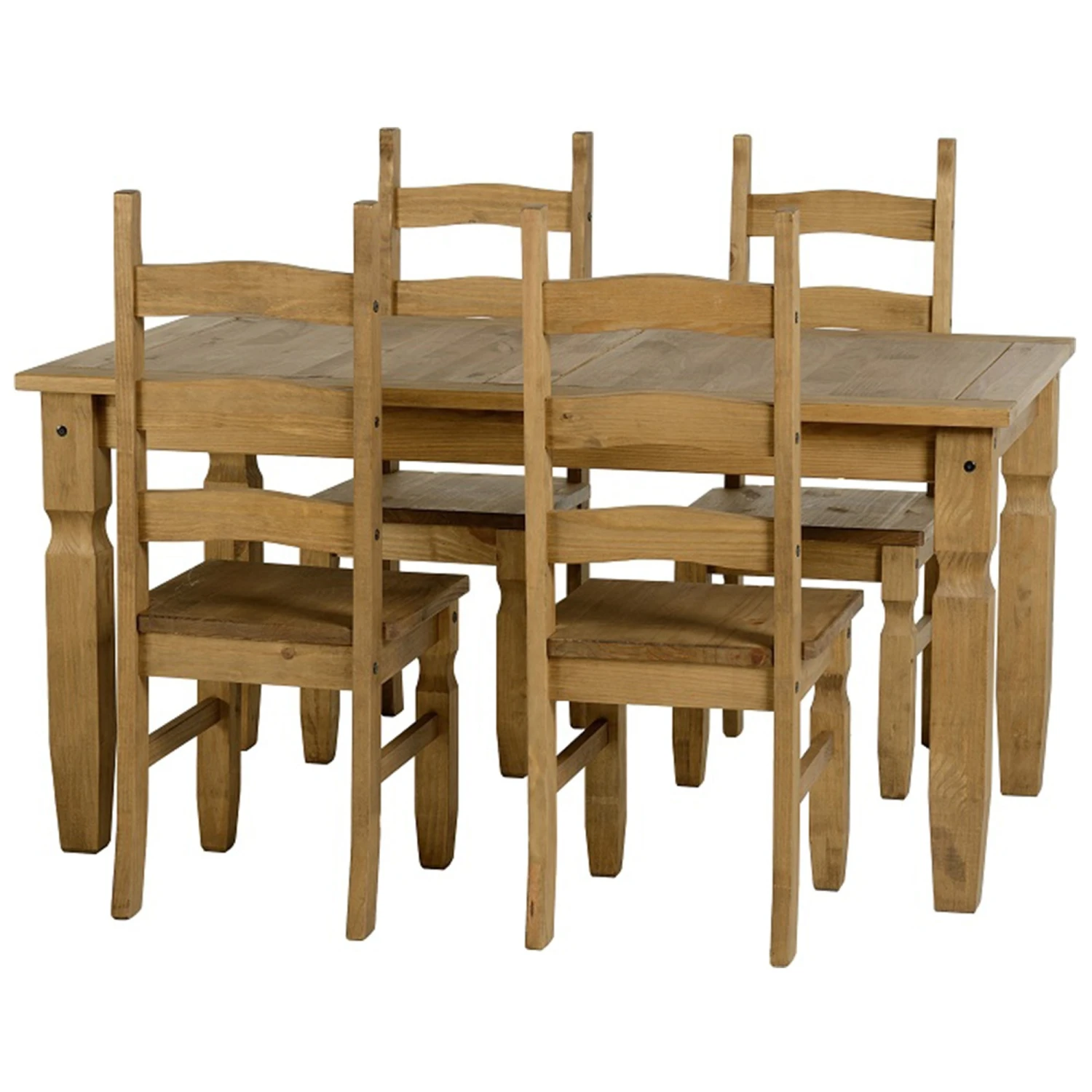 We are proud to introduce this stunning new dining set. Made from distressed waxed pine and boasting a modern style, these beautiful pieces are sure to impress.