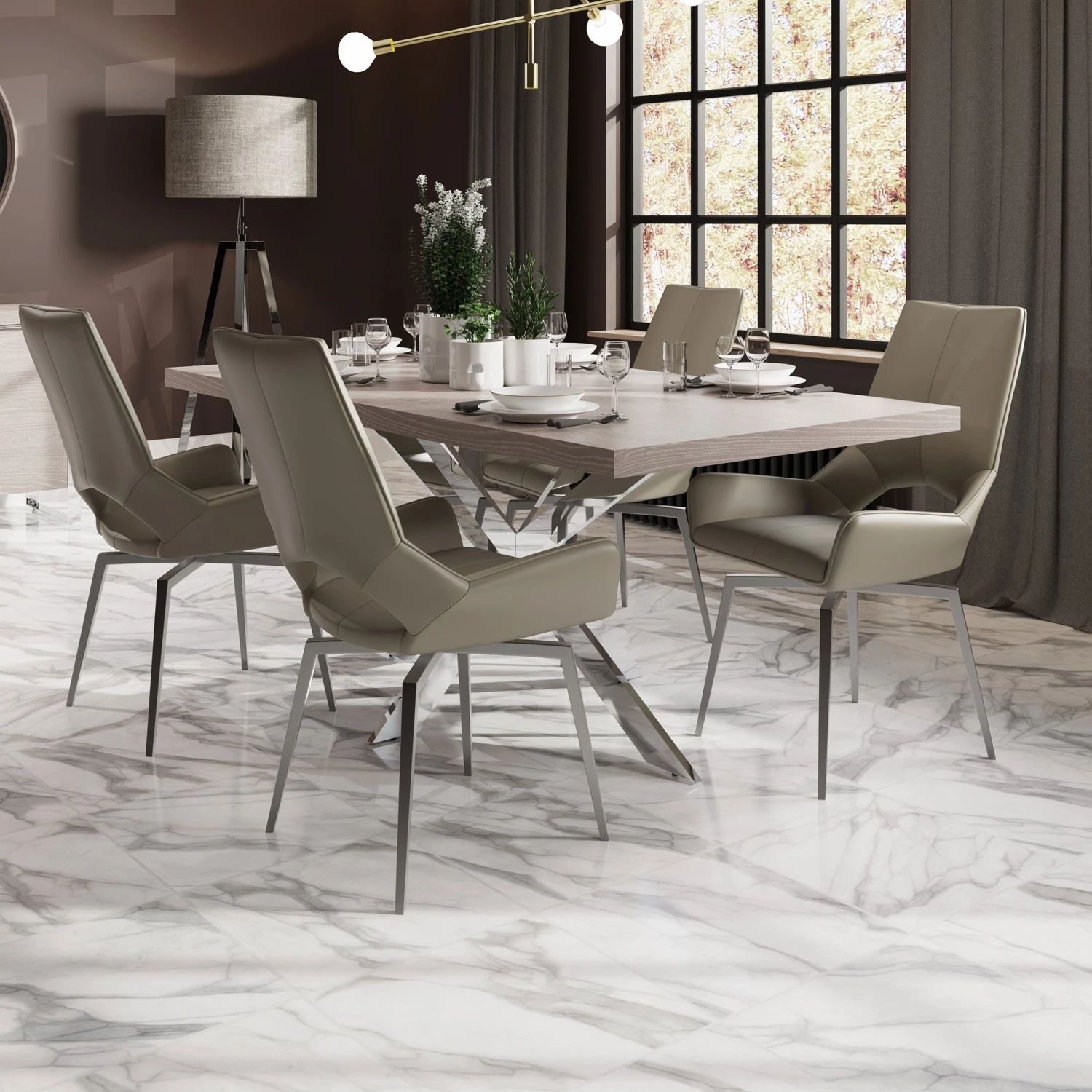 The stunning Idenhoe Dining 1.8m Dining Table will add a sophisticated and contemporary design to your dining room. The dining table features a beautiful silver oak table top showing the beautiful wood grain detailing and different tones. Stands on complimenting metallic chrome u shaped legs with non-scratch feet to protect your flooring, the dining table will seat up to 4 to 6 people. Display this stunning table with matching item from the Idenhoe Dining Collection for a elegant look or choose your own style of dining chairs to suit your style and interiors.