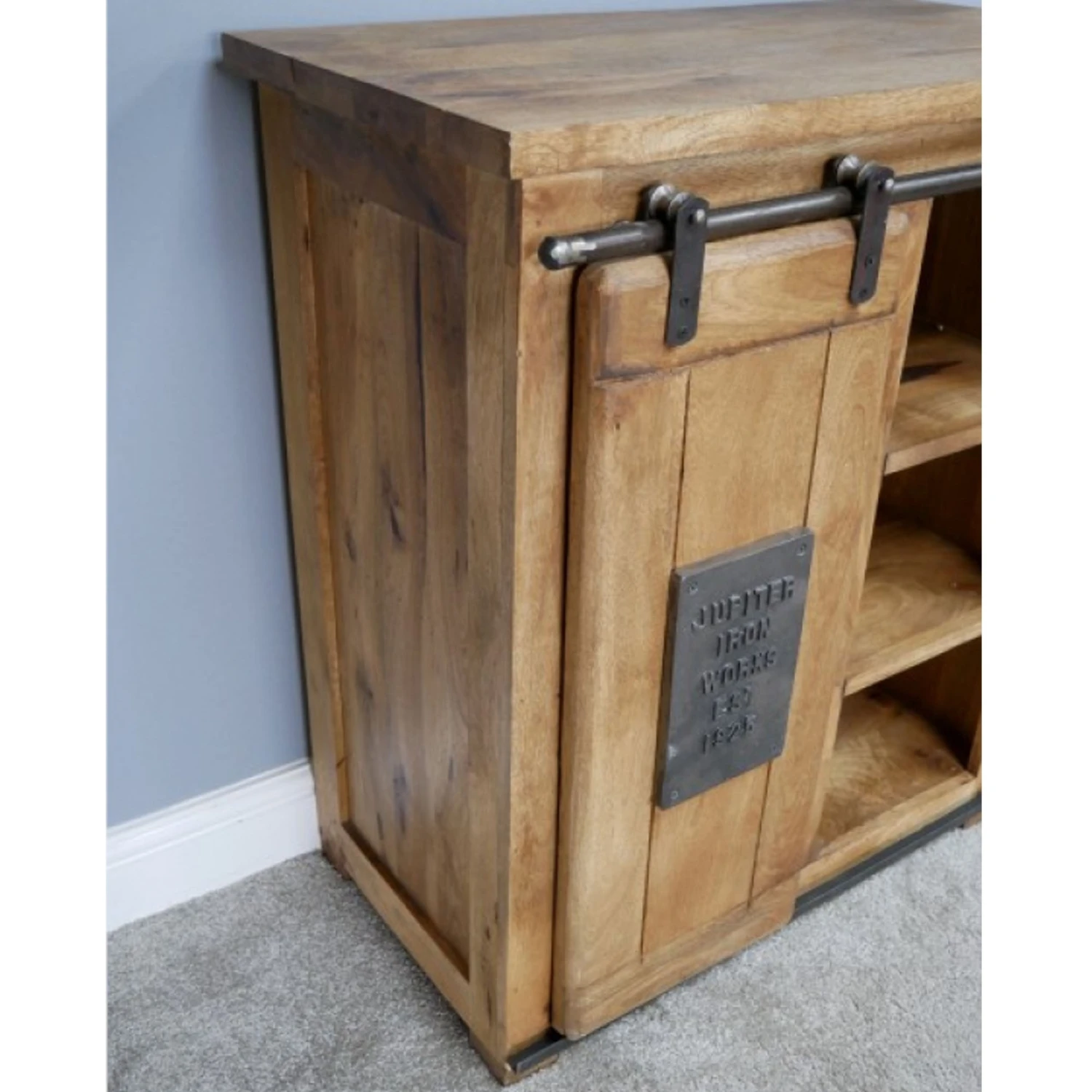 The Industrial Cabinet is the latest addition to our industrial range. Crafted from rustic wood, the cabinet features five shelf spaces with a sliding door, providing plenty of storage to be a practical and style piece of furniture.