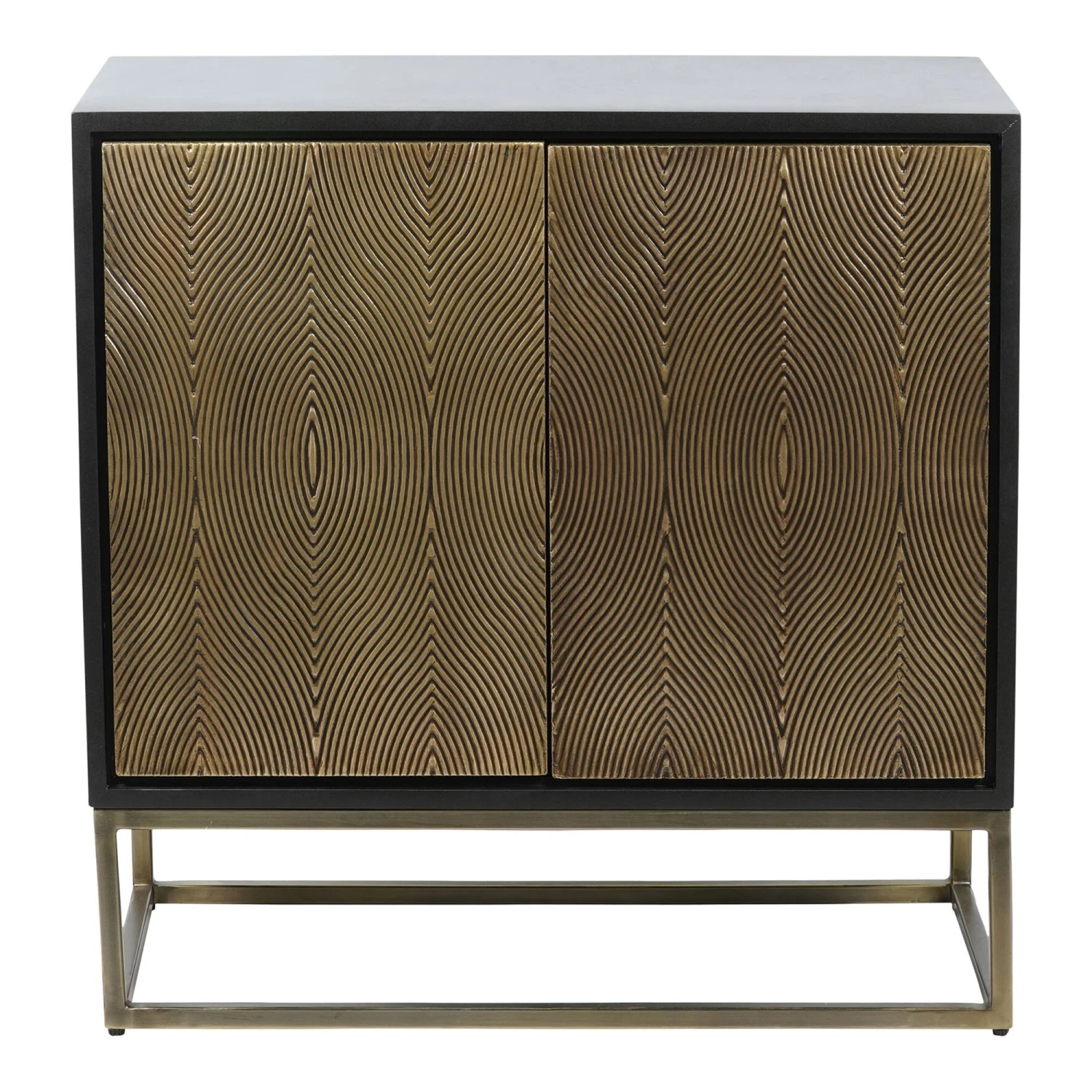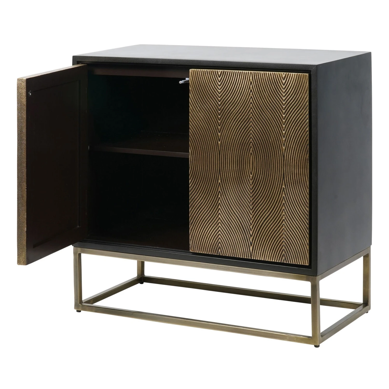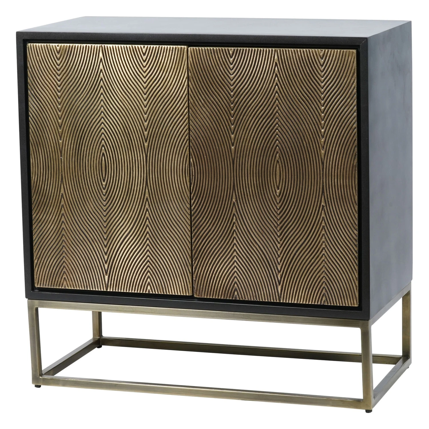An elegant addition to the home, increasing your storage options indoors, comes this Izabella Embossed 2 Door Cabinet. Crafted with a wooden construction, it features 2 doors that have an embossed hand finished metal front in a brass finish, that open out to reveal internal shelving. Stood upon a metal frame for sturdiness, it makes a lovely statement piece, suitable for dining or living room placement.