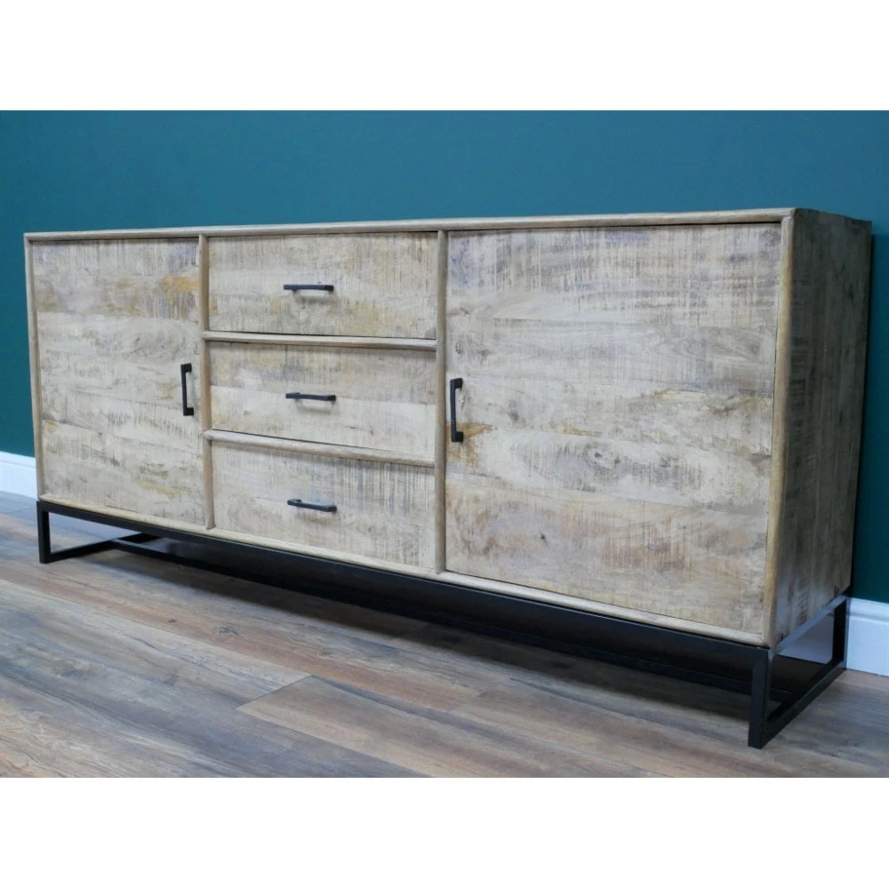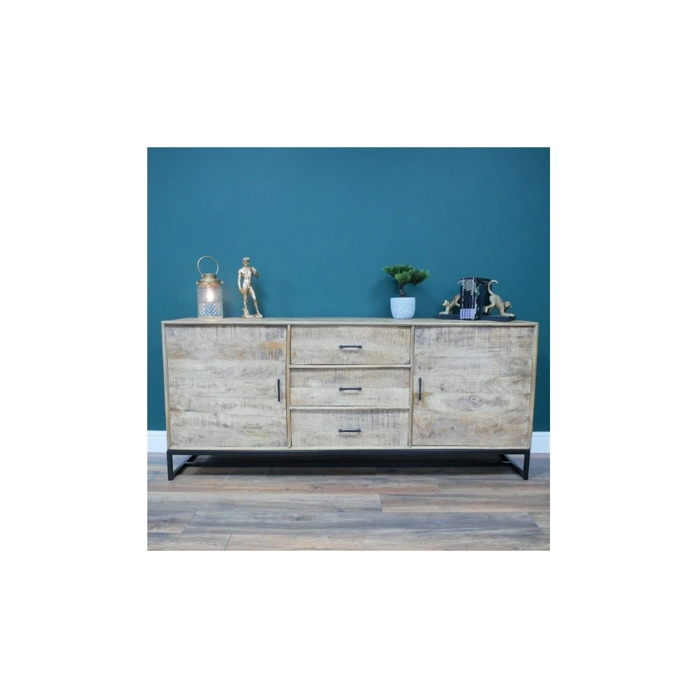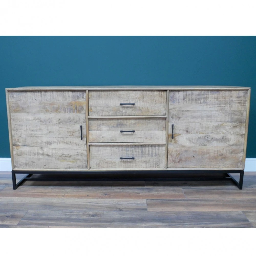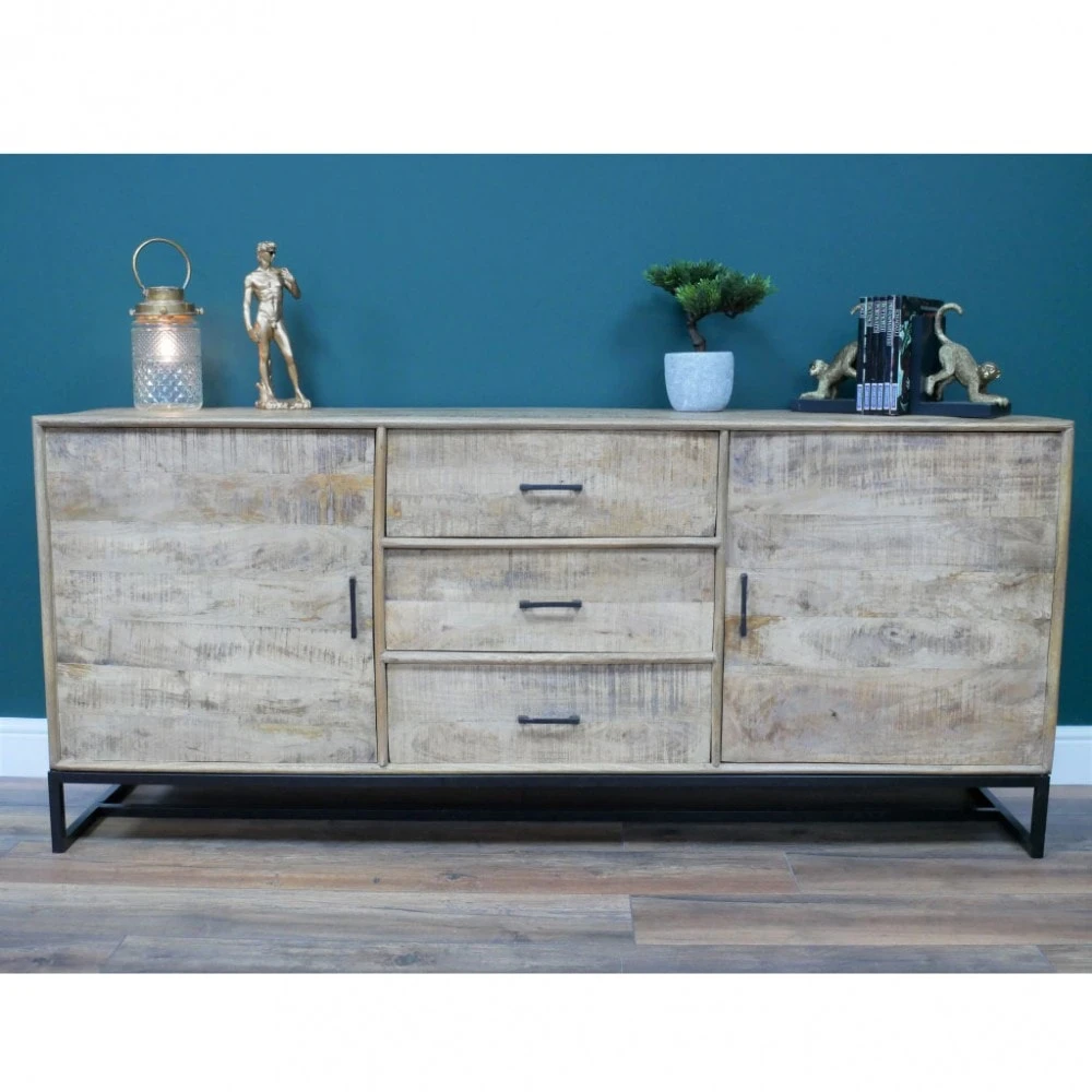 Adding a rustic charm to your living room or dining room with this Large Mango Wood Sideboard. The sideboard is crafted with mango wood, showing all the beautiful different tones and textures of the wood grain. There is plenty of storage with 3 large drawers down the centre and 2 cupboards each side.