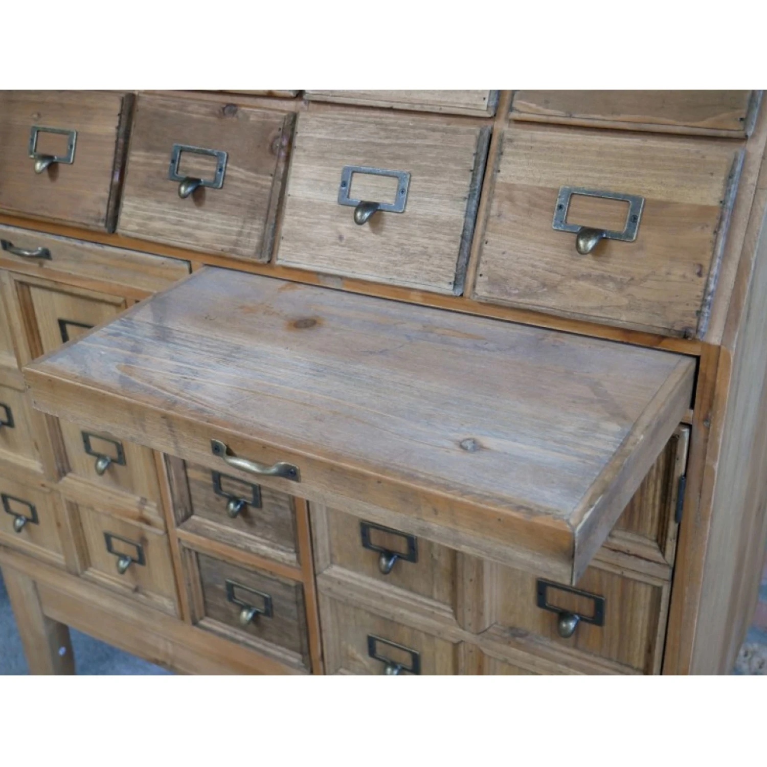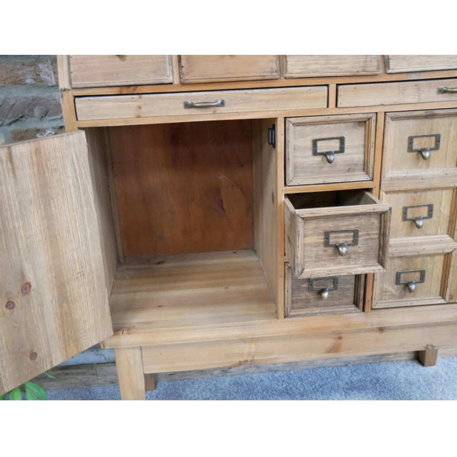 Our Large Storage Cabinet is the latest addition to our Industrial range. Crafted from wood this impressive cabinet showcases various drawer and cupboard spaces, providing ample storage to become a practical piece to have around the home whilst providing a real style statement.