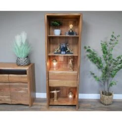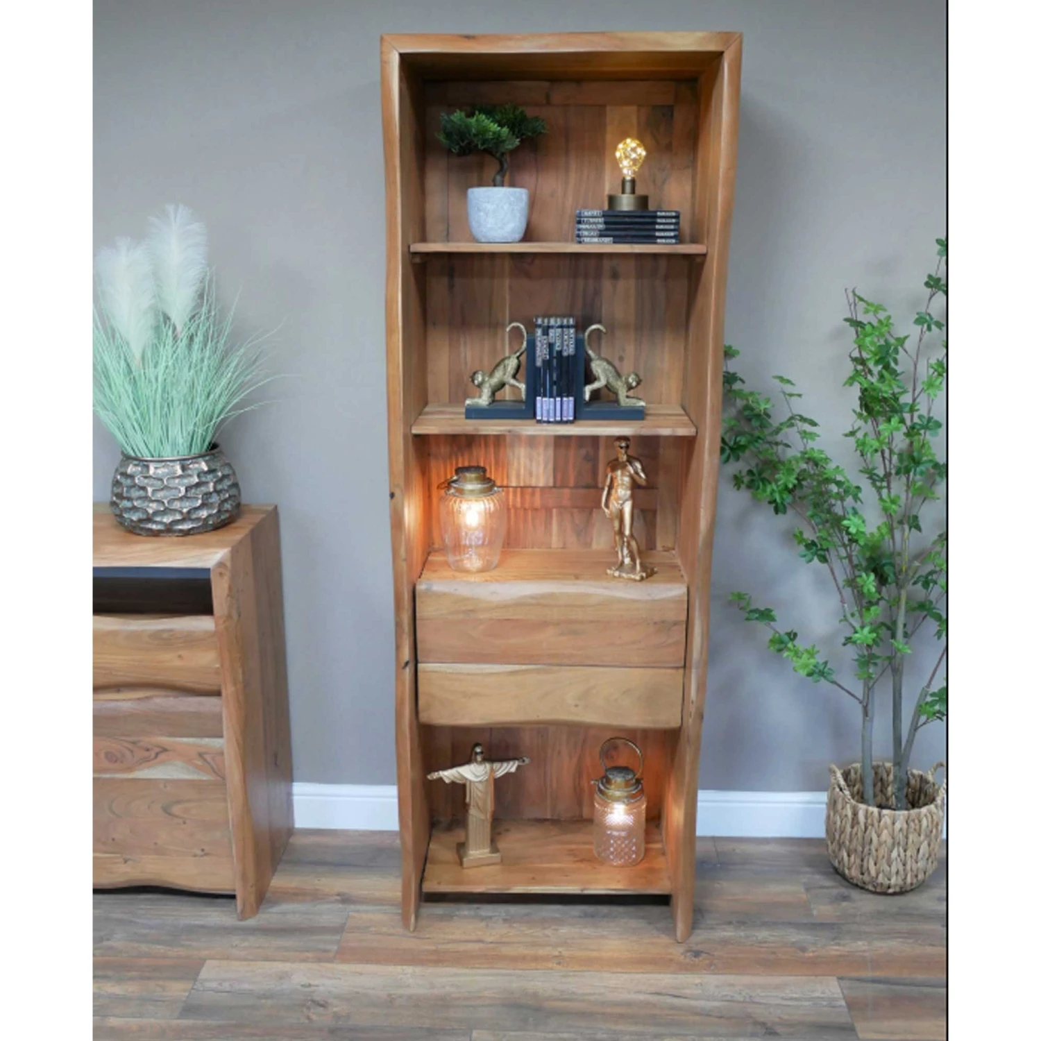 Make choosing a new book to read much easier when you introduce the Living Edge Bookcase to your dining or living room. Naturally handcrafted creating a unique design, it’s made using acacia wood with a brown finish and comes with 3 shelves and 2 drawers of storage. Add a book end to each shelf and arrange your books in order and pick what next to read when they appear in full sight on the shelves provided. A great way to keep your favourite collections together, it will be a practical furniture piece!