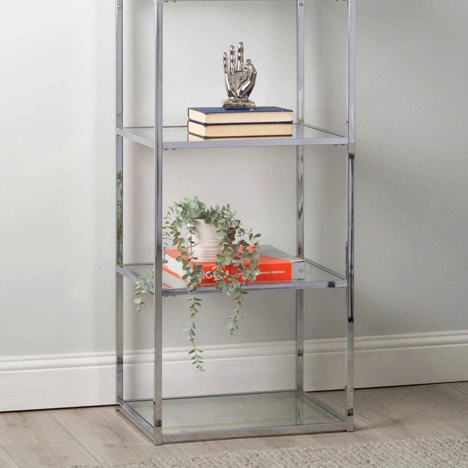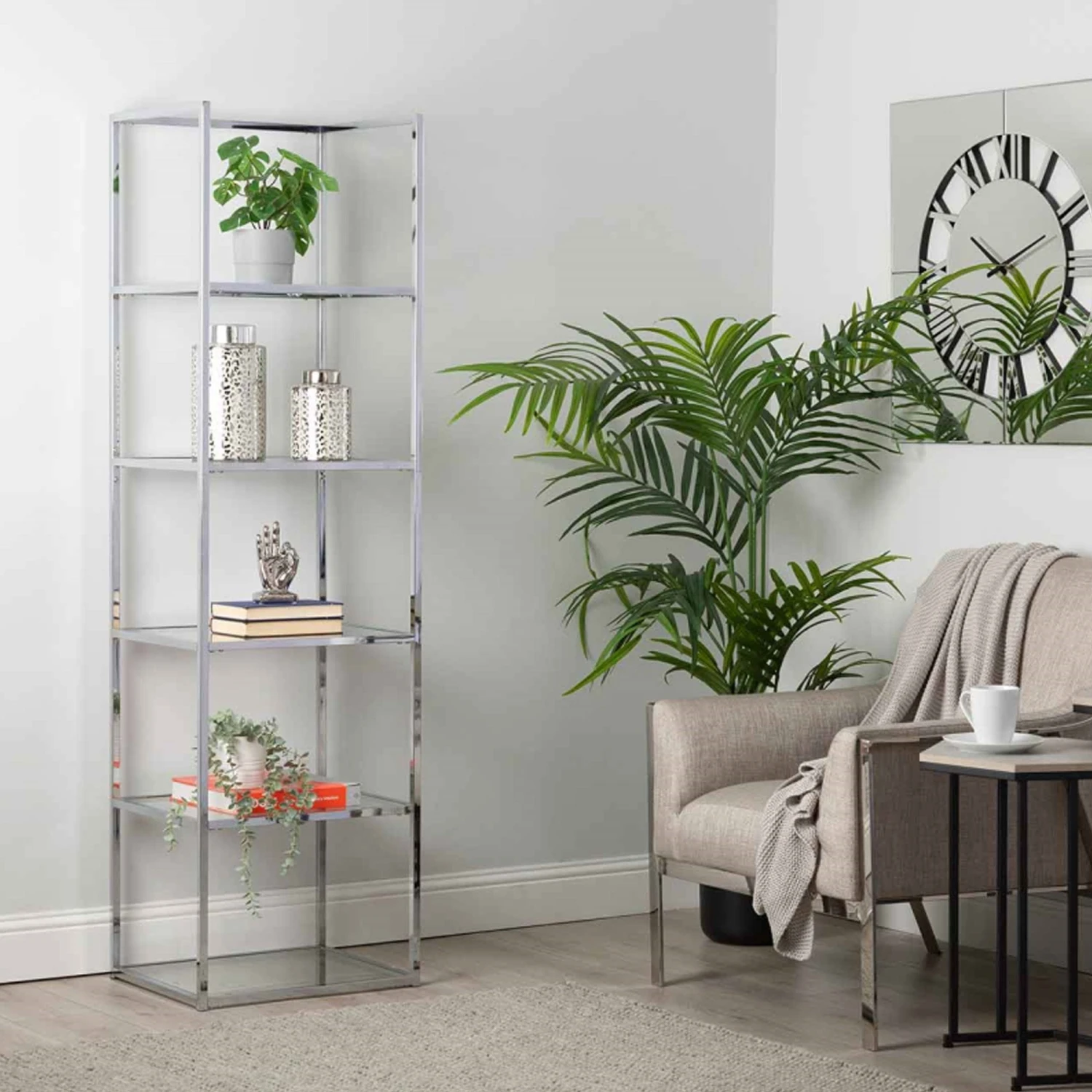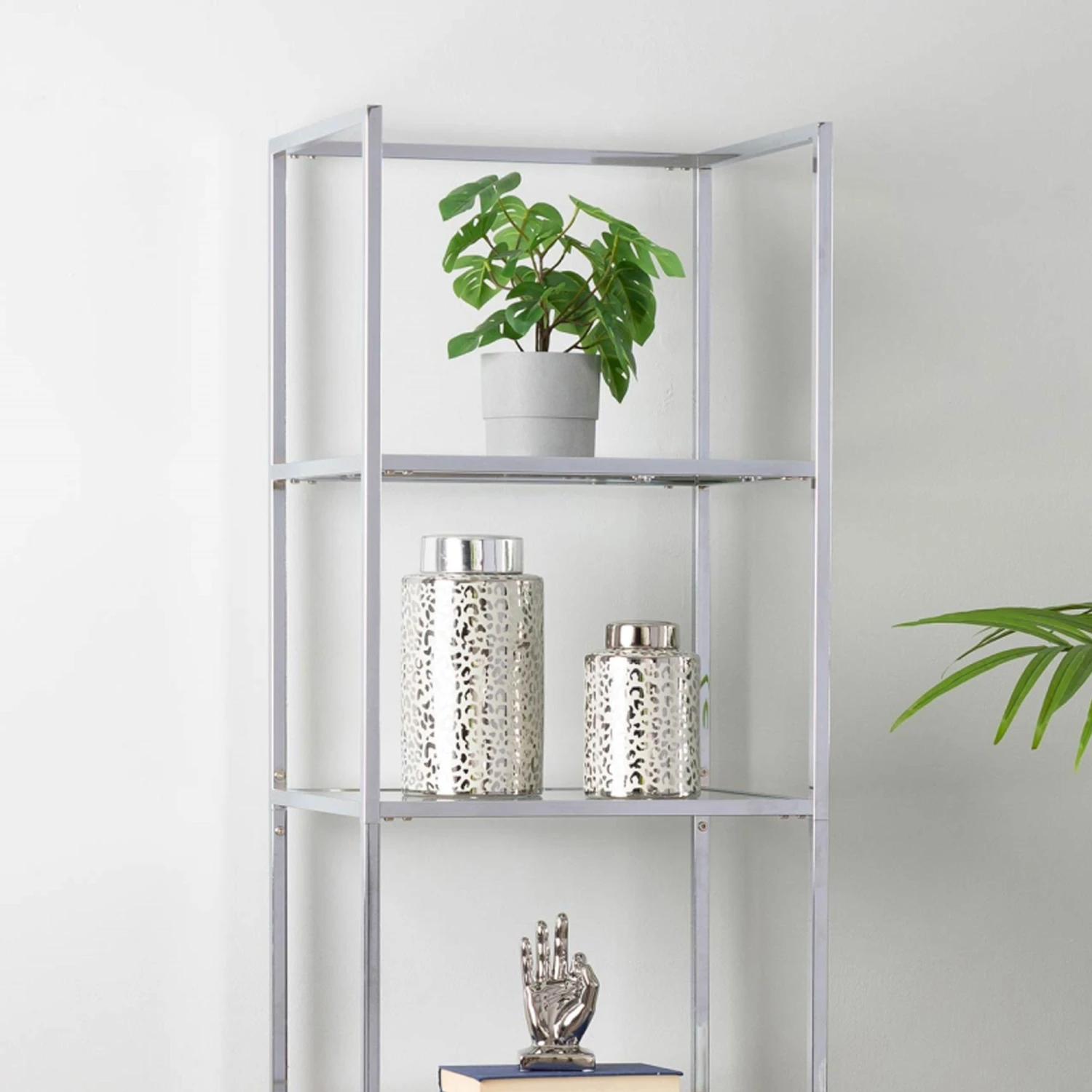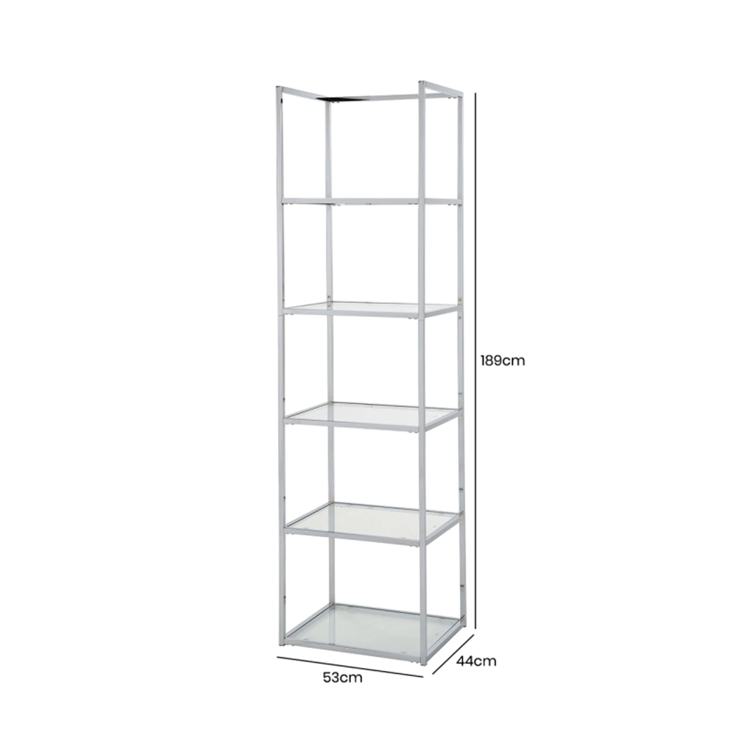 Adding a modern touch to your home, perfect for displaying art pieces and ornaments, the Logan 189cm Chrome and Glass 5 Tiered Rectangular Display Unit will make a wonderful feature placed in the corner of a room for all to see. With a chrome stainless steel frame with a 5 tiered design with tempered glass shelves, it’s perfect for giving your home decorative appeal and can display many items in a vertical design.
