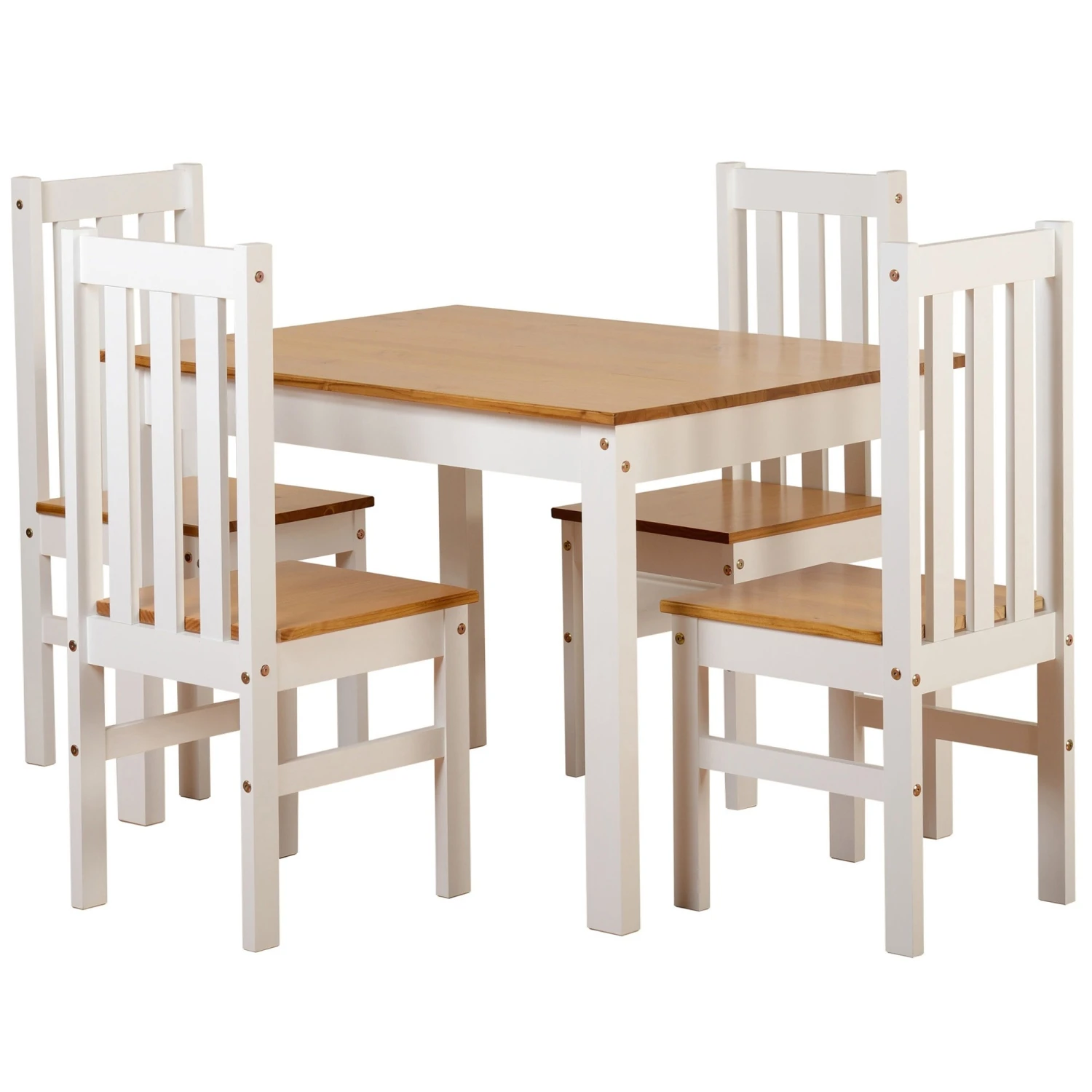 Spruce up your dining experience with the Ludlow Dining Set, this dining set comes with a table and four chairs. The table and chairs feature a Oak and White lacquer finish for a beautiful appearance.