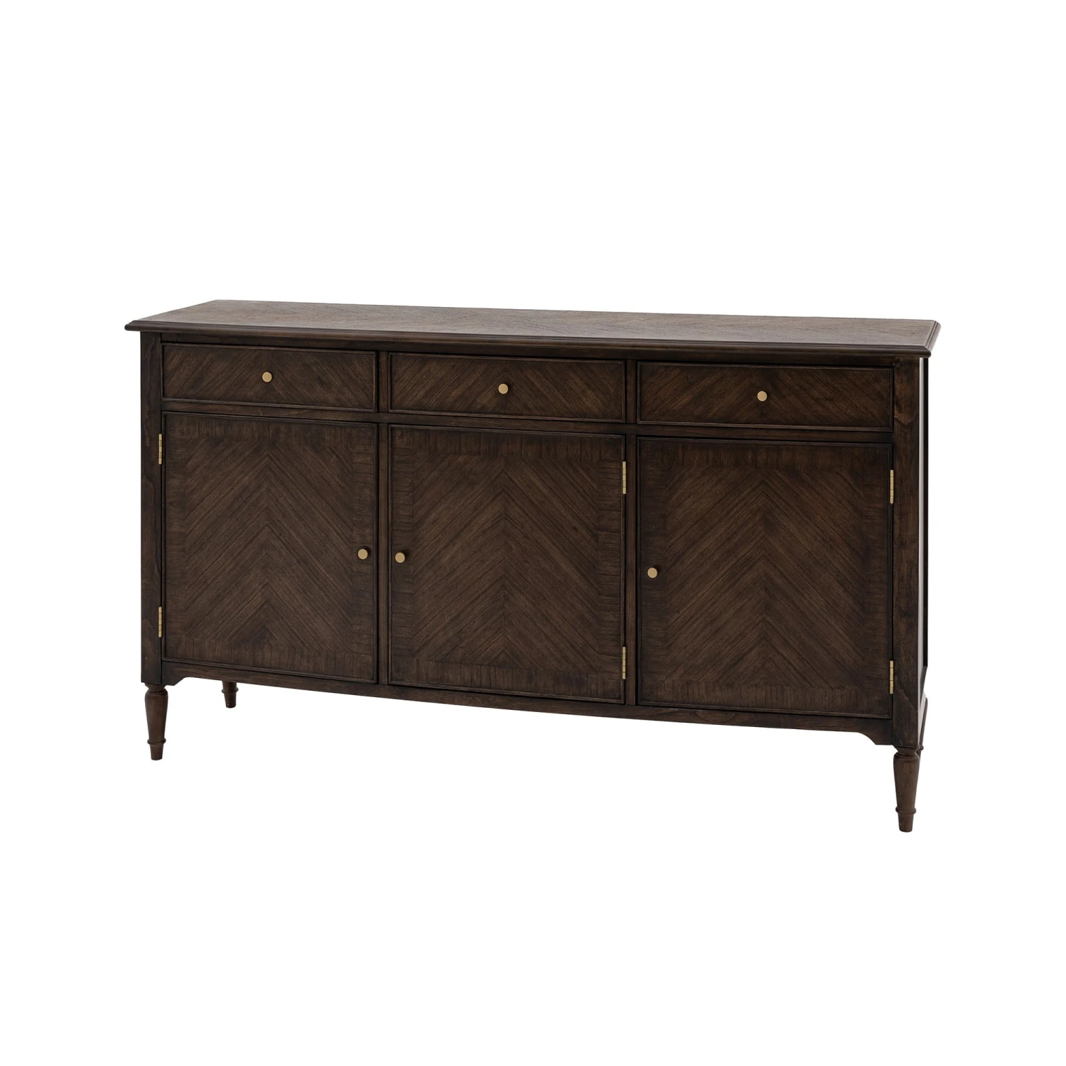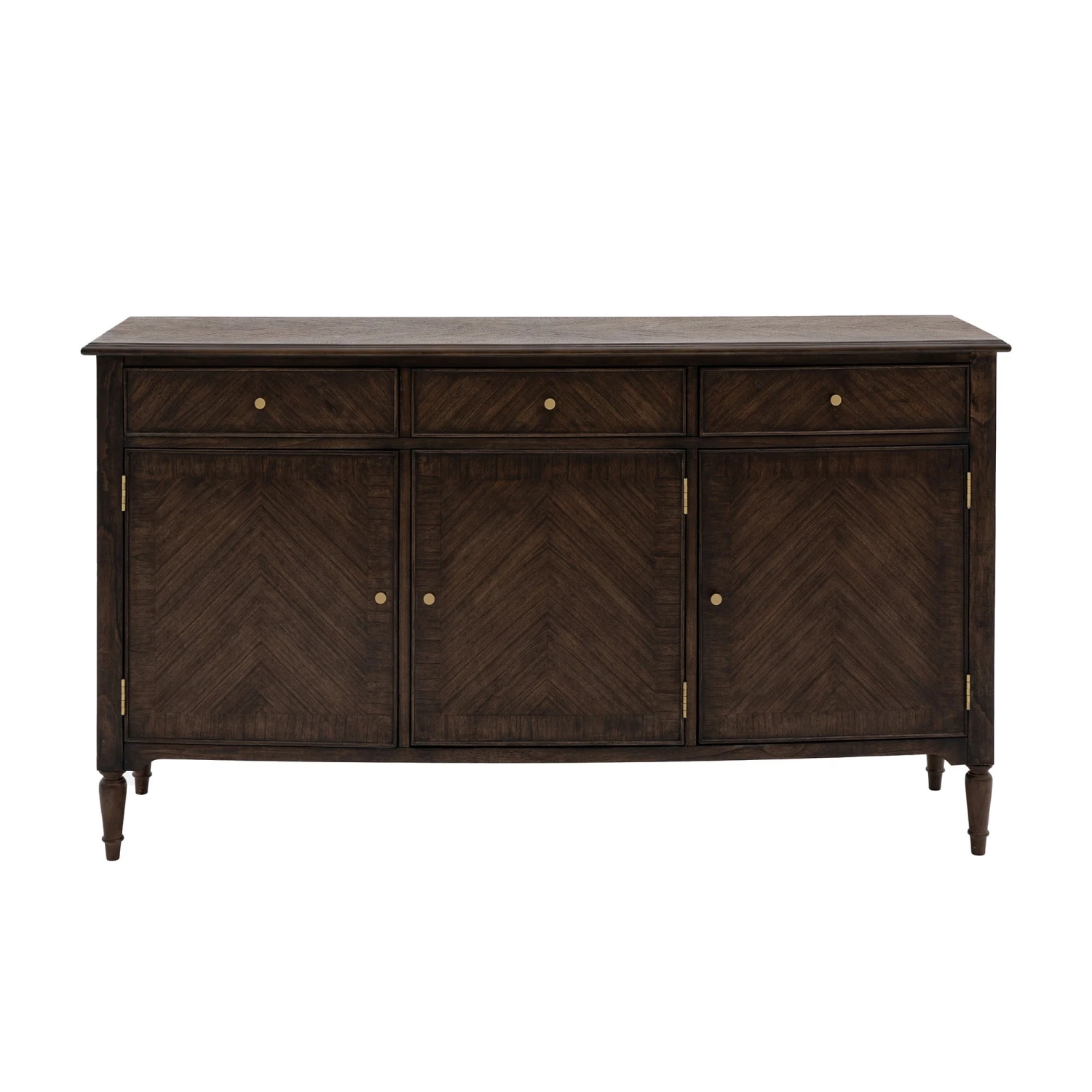 The elegant Madison Coffee 3 Door/3 Drawer Sideboard 170 x 95 x 45 cm will add a retro style to your living or dining room. The sideboard is crafted with solid Mindy wood in a stunning coffee tone. Offering plenty of storage this timeless piece features 3 doors and 3 small drawers above. The cabinet is finished with solid carved wood legs and satin brass handles.
