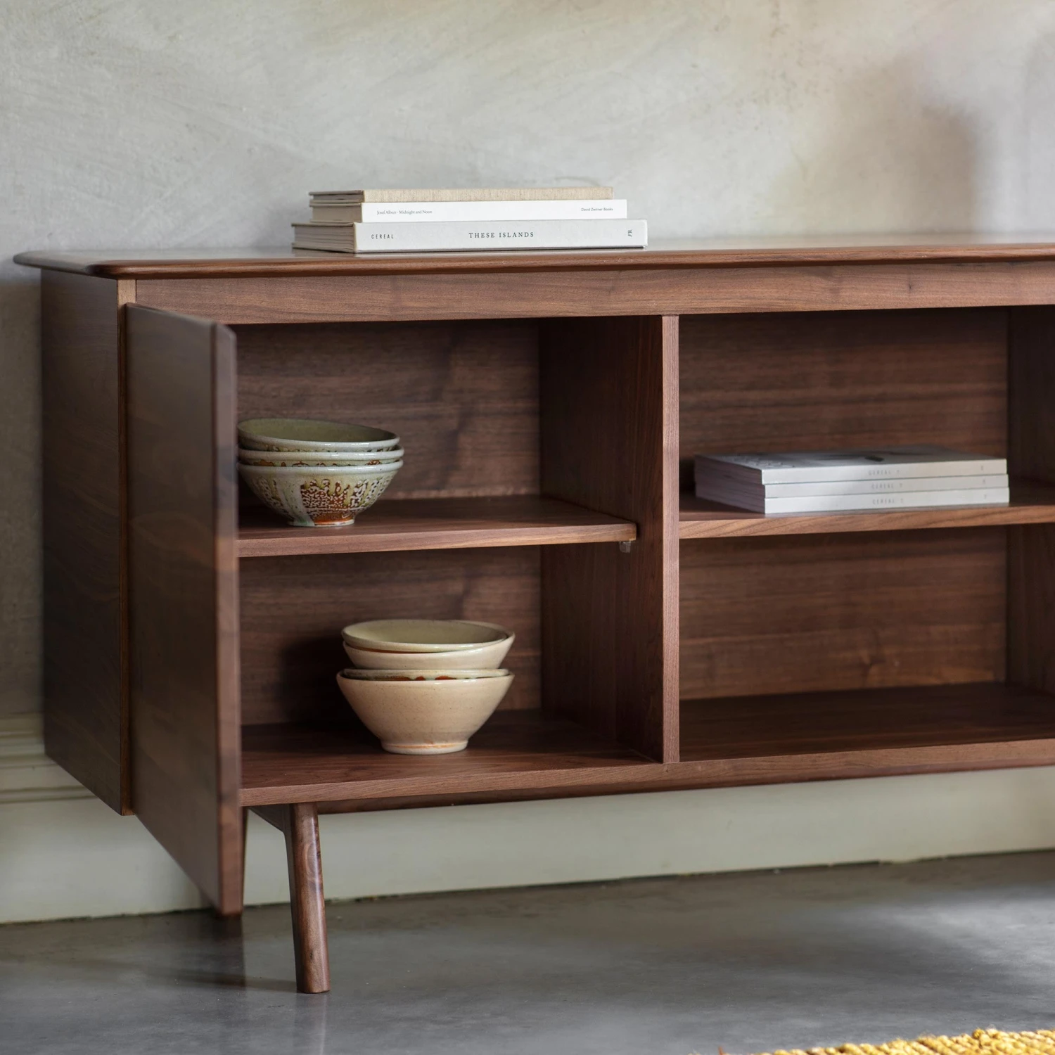The Madrid Sideboard is the latest addition to our range of modern and contemporary furniture. Finished in natural walnut wood this beautiful sideboard is boasts a simple yet stylish design that would create a style feature in any room. Boasting two cupboards and three drawers it has ample storage making it a practical piece around the home.