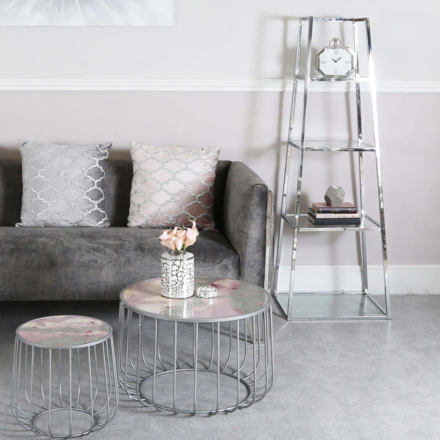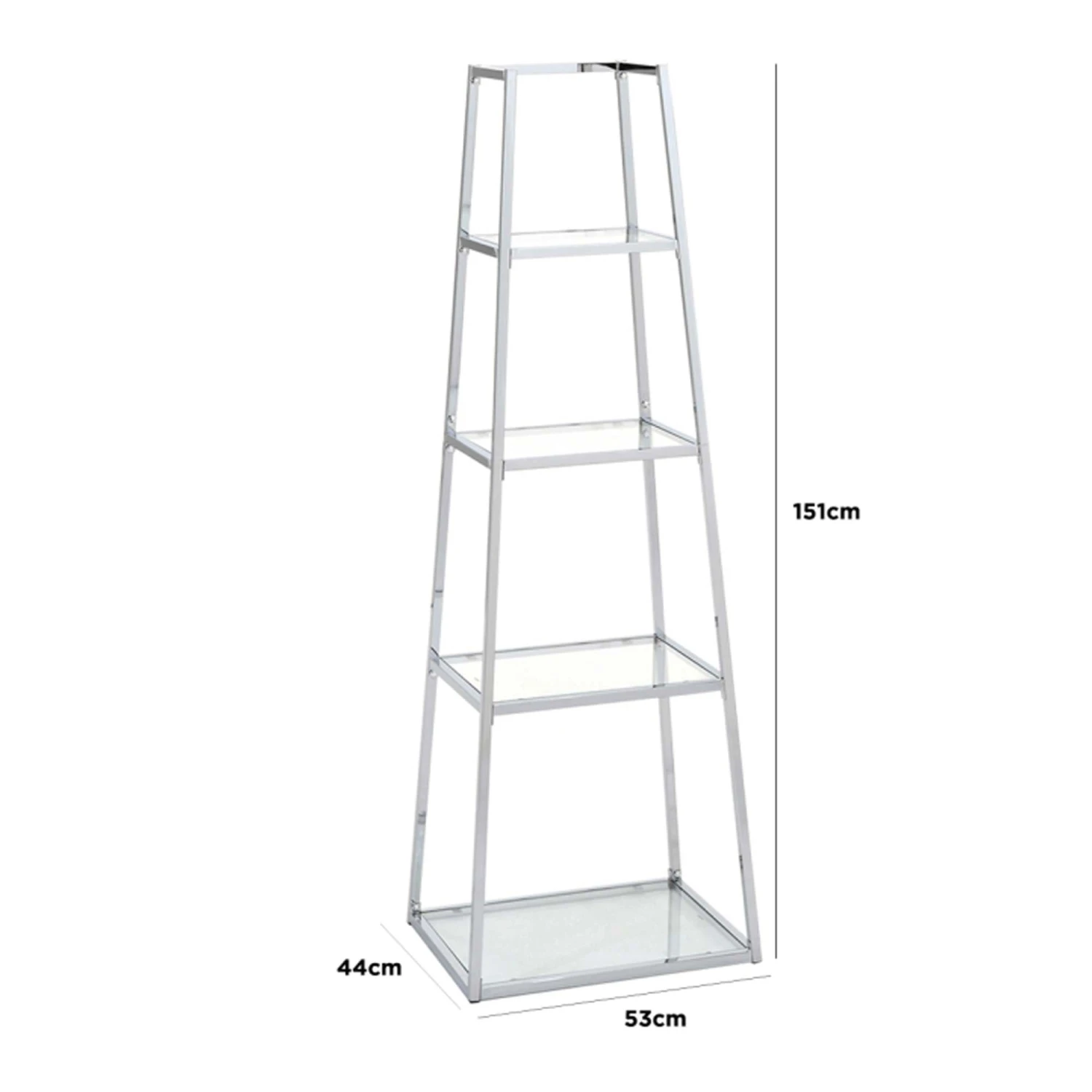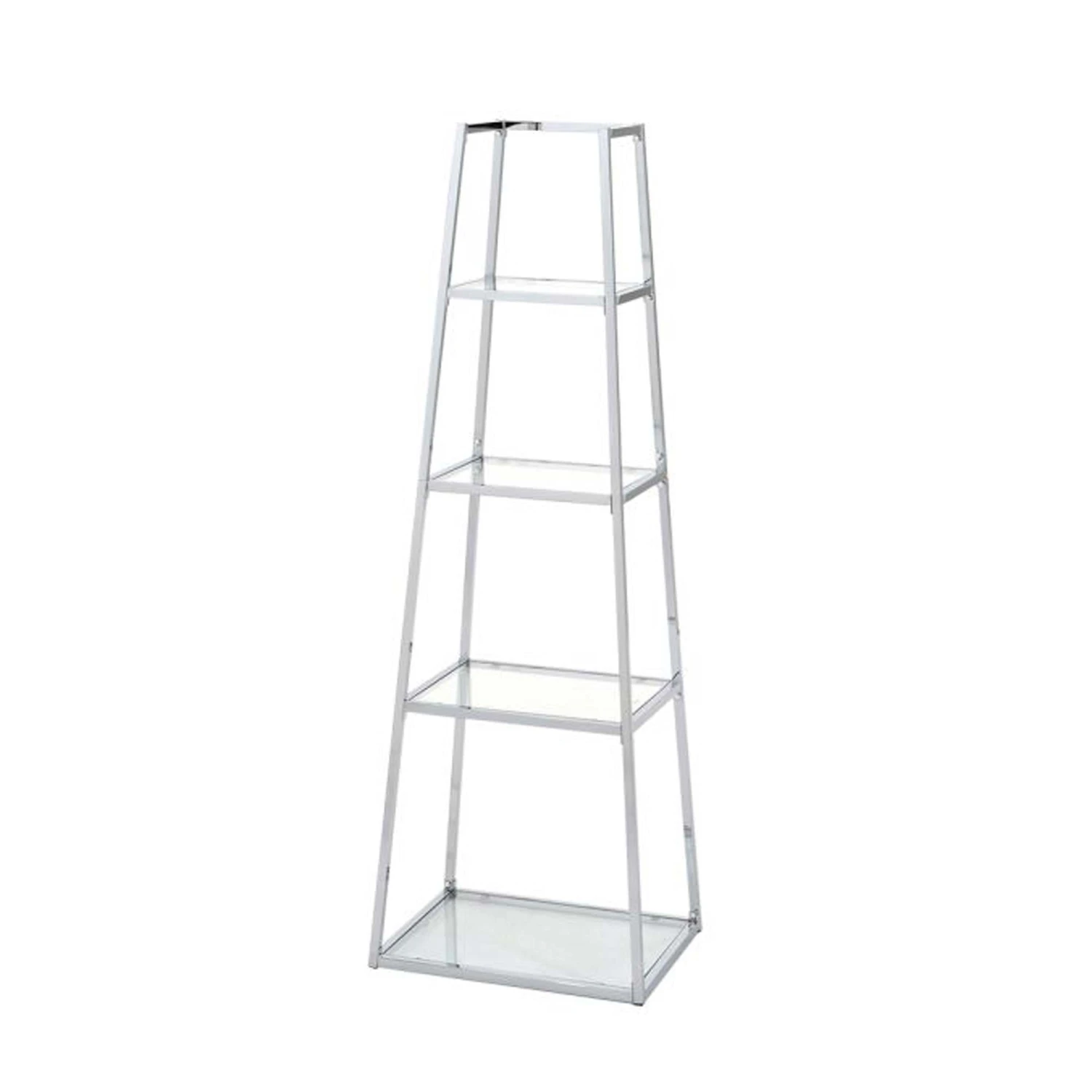 This Medium Logan Ladder Display Unit is a unique way of displaying all your favourite photo frames and ornaments. The ladder style display unit features 4 glass shelves and a silver chrome frame, suitable to match any existing chrome furniture in the room.