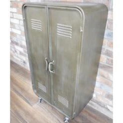 Introducing the newest piece in our industrial style range. This metal cabinet has two shelves inside, making it not only stylish, but practical too. Set on wheels, this is the perfect piece to add to your collection.
