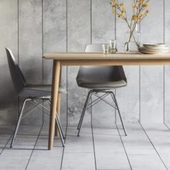 The stunning Milano Dining Table features a beautiful inlay chevron design, and is made using European oak and rustic oak structured veneers which show the natural beauty of the oak grain and knots. Finished in a specialist mat lacquer, which keeps the timber looking natural and dry, with brushed out grain, the table is tactile to touch and looks amazing. This is perfect to keep in any modern and contemporary styled dining area.
