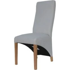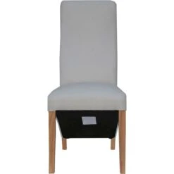 The Natural Scroll Back Chair comes in a unique design adding something a little different to your dining room table. The chair comes in a scroll back design with a high back rest to add extra support. The chair features a stunning light grey fabric with natural brown wood legs. Style the chair with a matching table to suit your interiors perfectly.