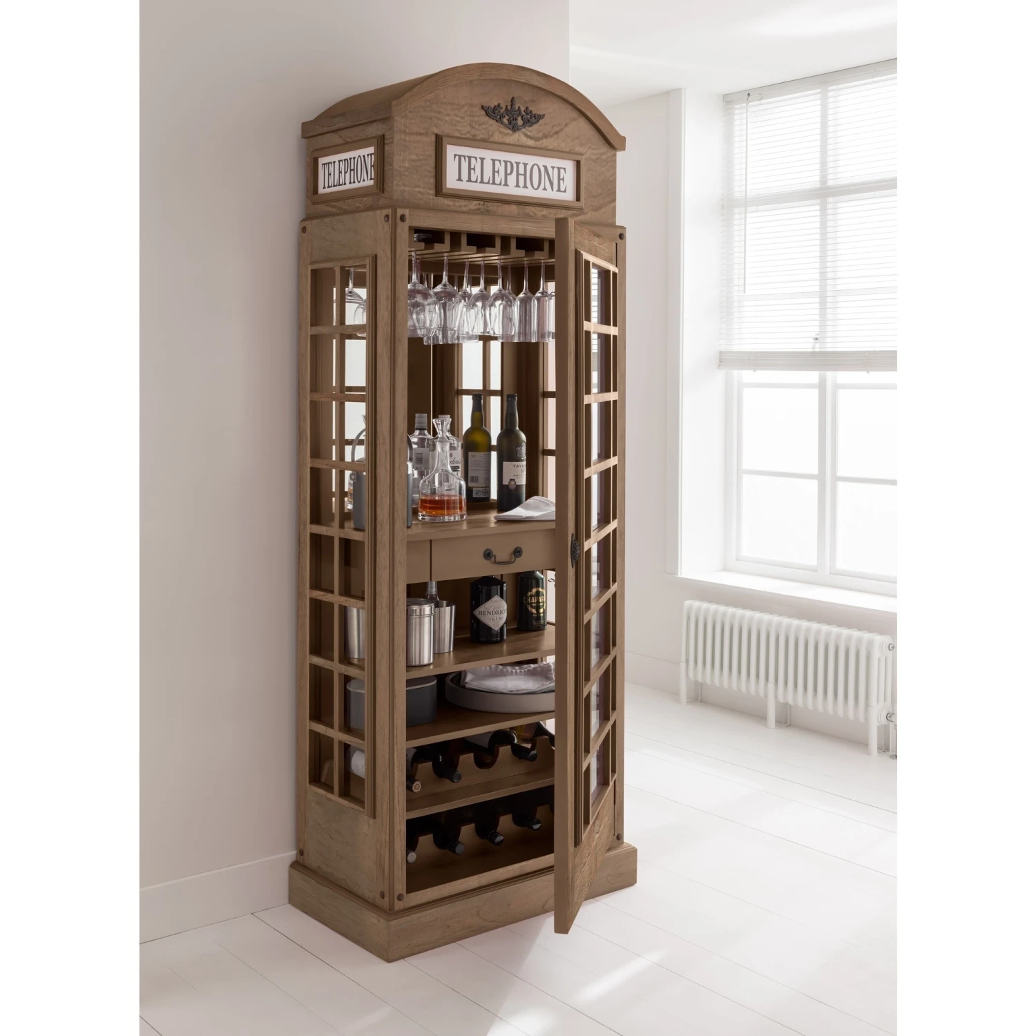 Introducing the very stylish natural wood telephone box display cabinet which is sure to spruce any home bar or dining space with its undeniably modern look. Complete with bottle and glass holders.