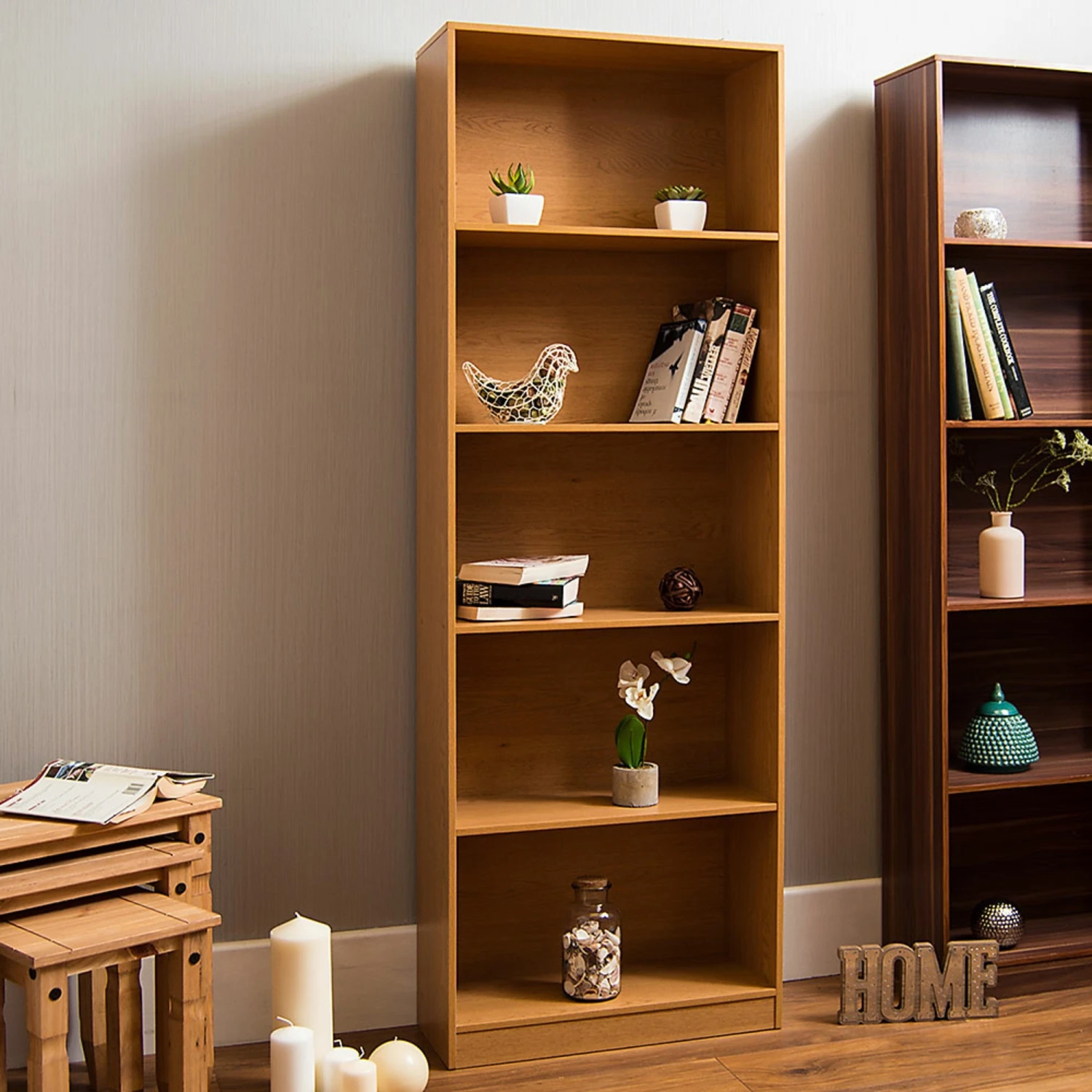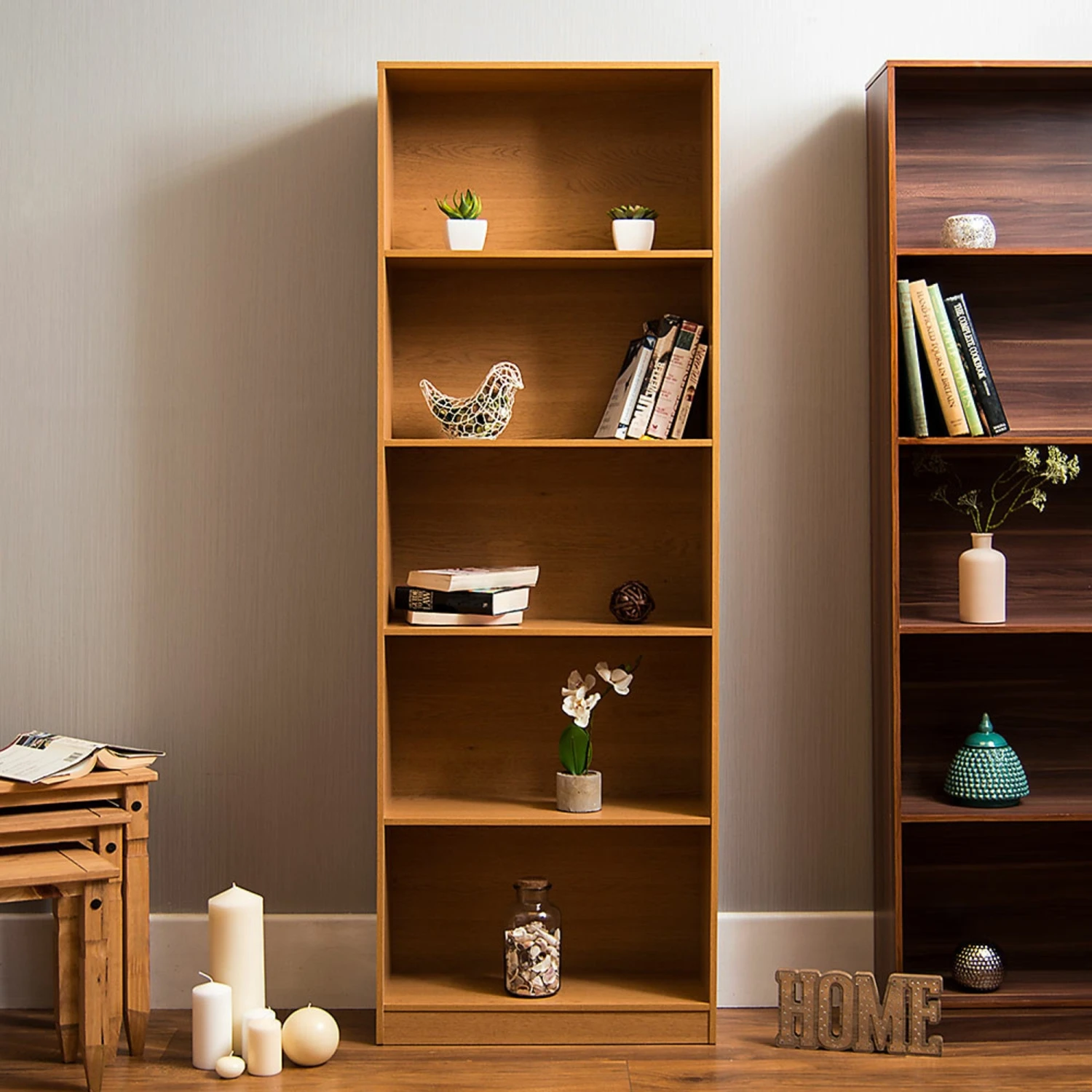 Featuring a natural oak finish, which works beautifully well with the wood materials used to create this practical modern bookcase, you’re going to want to make this bookcase a part of your home if you’re looking to add practical design and storage space to a lounge area or dining area.