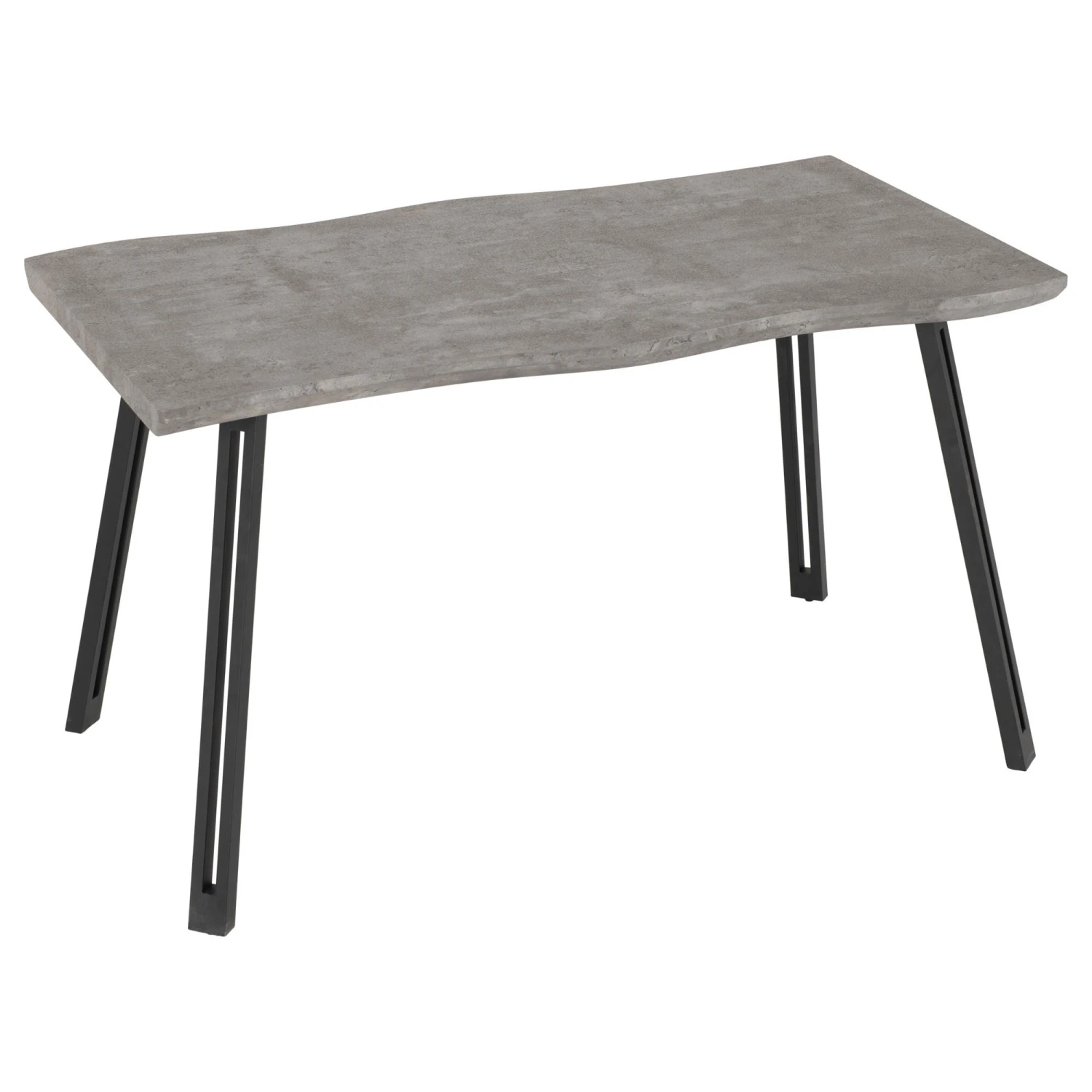 Expertly crafted using composite board and metal, this Quebec Black & Concrete Effect Wave Edge Dining Table is durably built with a strong, long-lasting finish to create a quality piece of dining furniture. Coming with a solid concrete effect table-top, stood upon black metal legs, it boasts an almost industrial style with a unique wave edge design. Suitable to seat up to 4, making it perfect for small families, it will bring a contemporary look to your dining area.