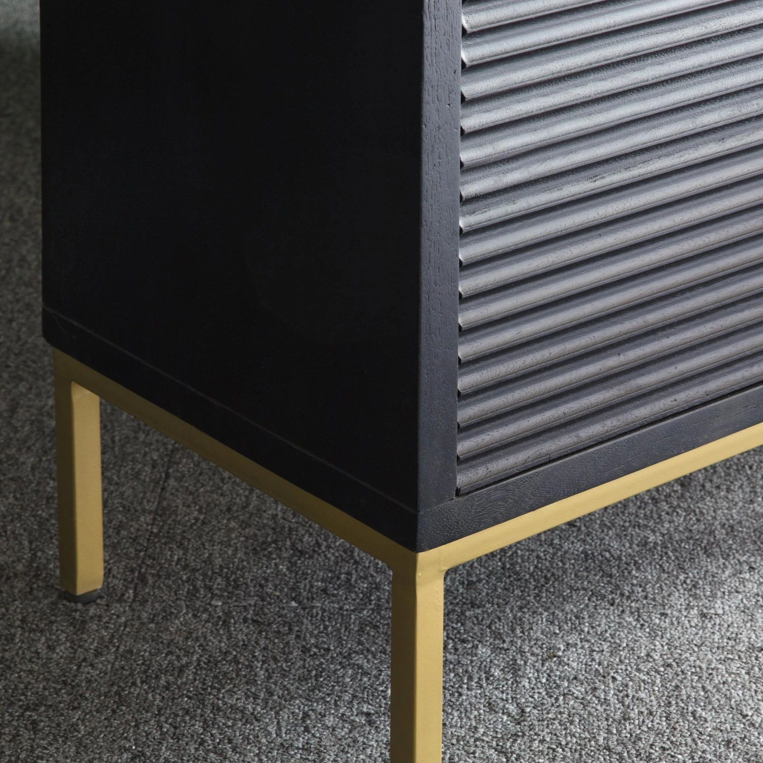 This Ripple 2 Door Open Display Unit will make a stunning addition to any contemporary style living room. Featuring 2 doors storage and 6 shelves, this open display unit will allow you to showcase your favourite ornaments and home decor items. The open display unit is complete with a ripple effect finish and gold metal table legs.