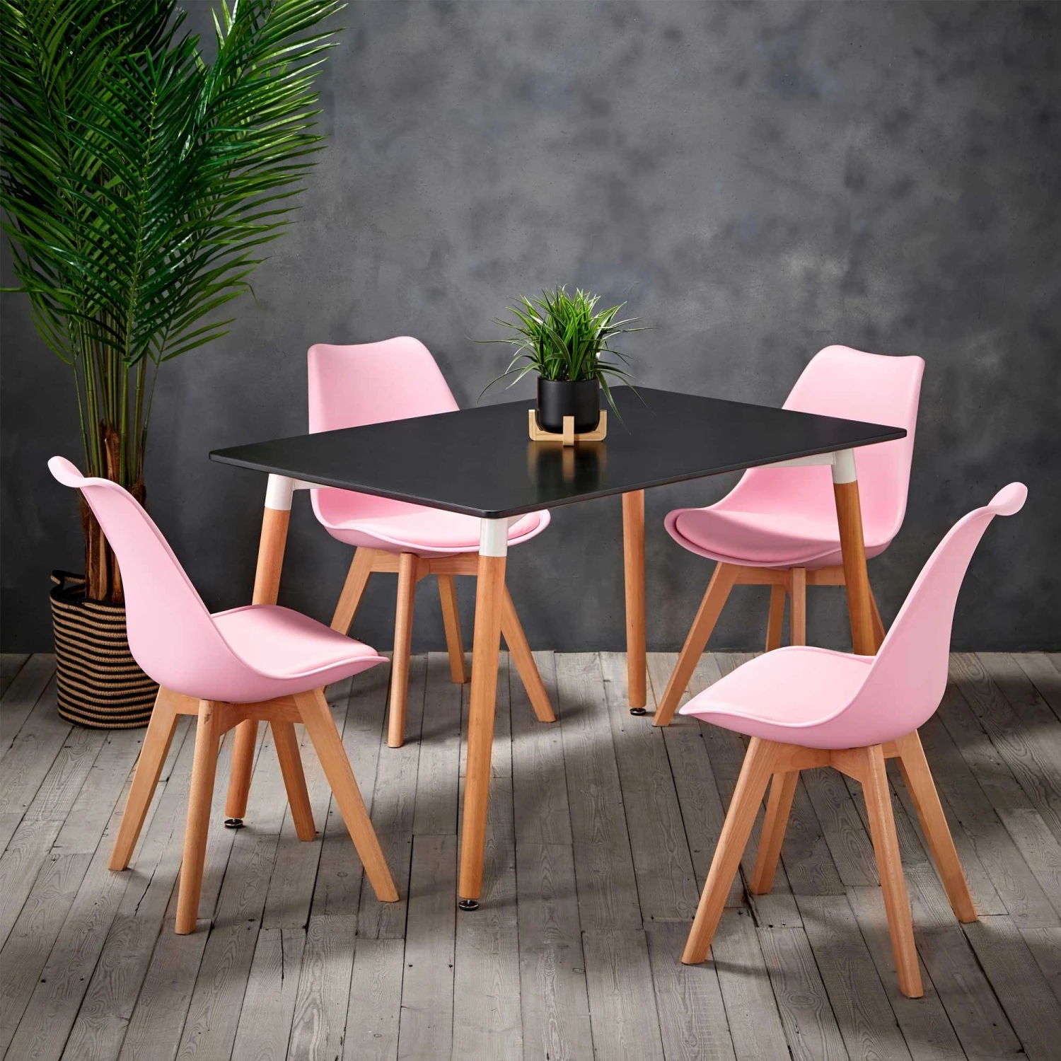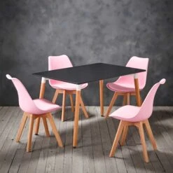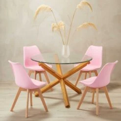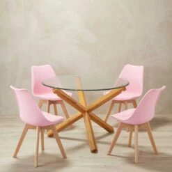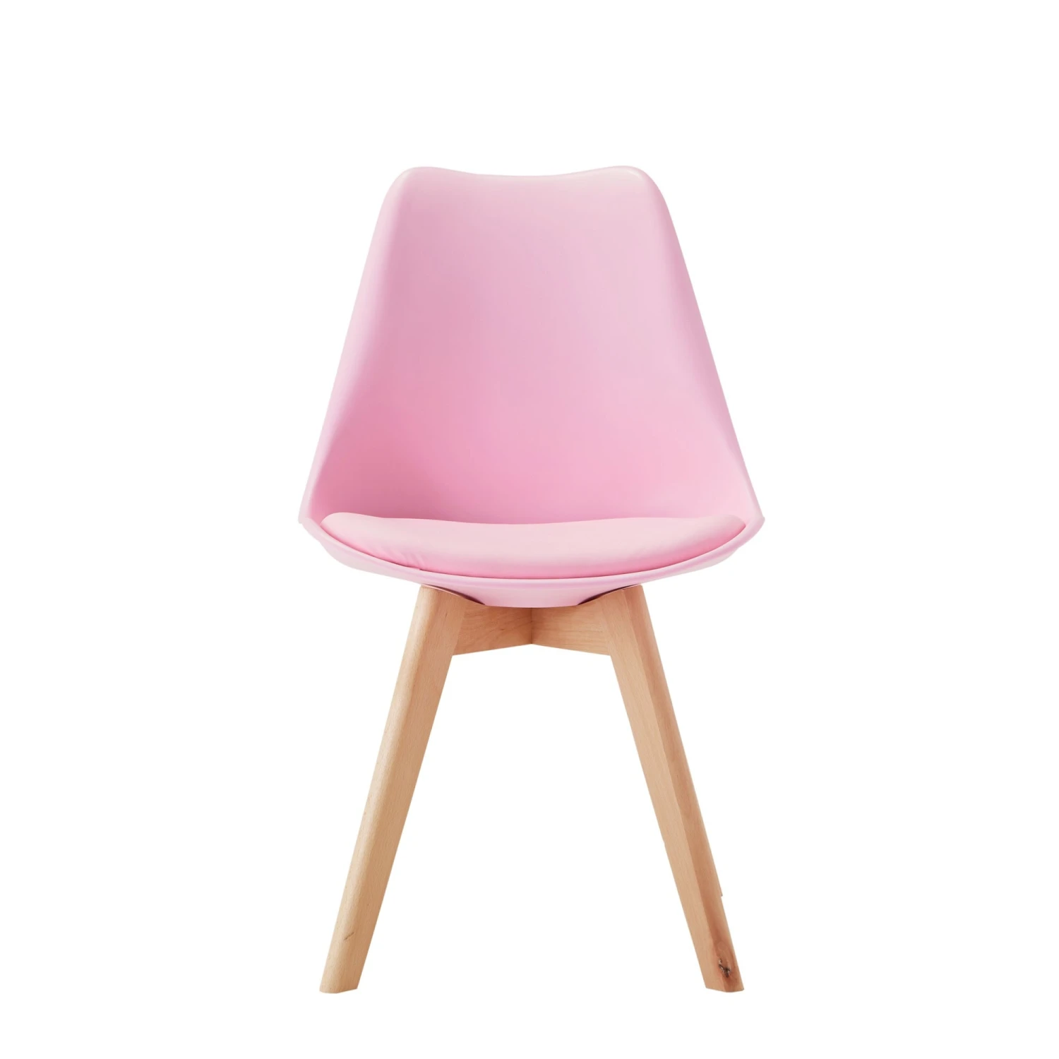 Spruce up your dining room interior with the beautiful Set of 2 Baby Pink Louvre Chairs. Adding a vibrant look with their bright baby pink colour, they will certainly make a statement when inviting guests over for dinner! Crafted from plastic with a foam padded seat for generous comfort with a faux leather cover, they come with solid wooden legs to ensure a stable build. In a set of 2, they are perfect for upgrading your dining table chairs with a new contemporary style.