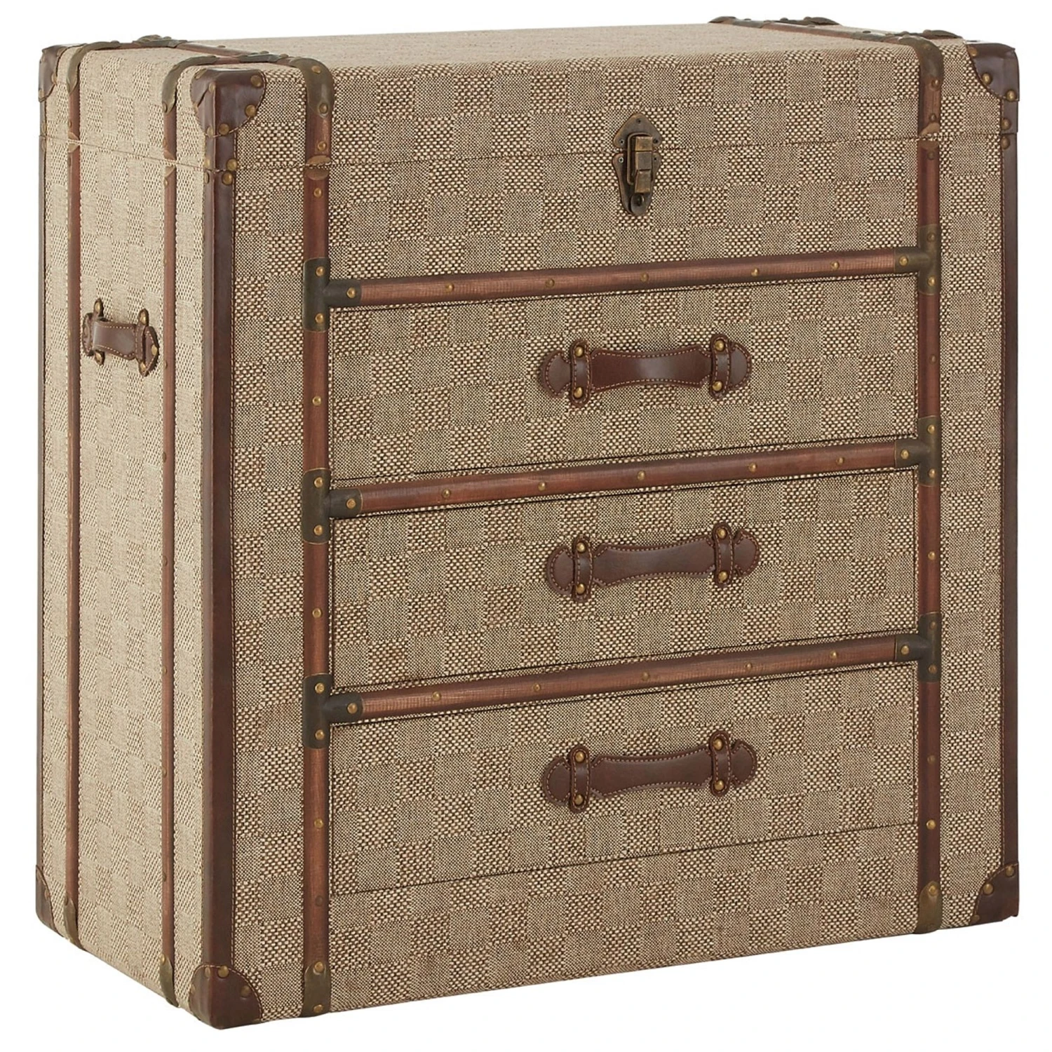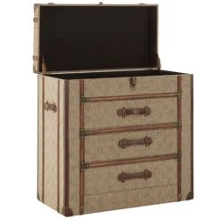We are very proud to introduce this gorgeous Winston Cabinet. It has an astonishing design which is very unique, as well as very homely. This Winston cabinet includes 3 drawers and a top storage space, making it a very practical and stylish storage solution. The Winston Cabinet is created from a combination of Leather Effect, Linen and MDF.