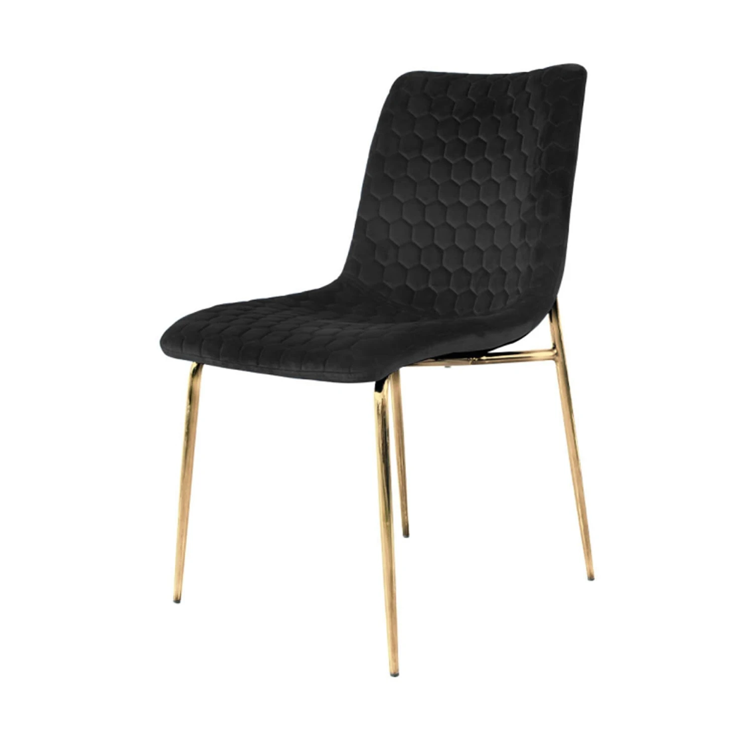 Give your dining room a whole new look when you introduce the Zula Black Dining Chair with Gold Legs, adding a contemporary feel to your home interior. Incredibly stylish with contrasting black upholstered seat and iron metal gold legs, it’s a lovely feature for around a dining table, offering incredible comfort with its foam designed seat. With a detailed honeycomb style pattern, it won’t fail to impress with its modern and stylish build.